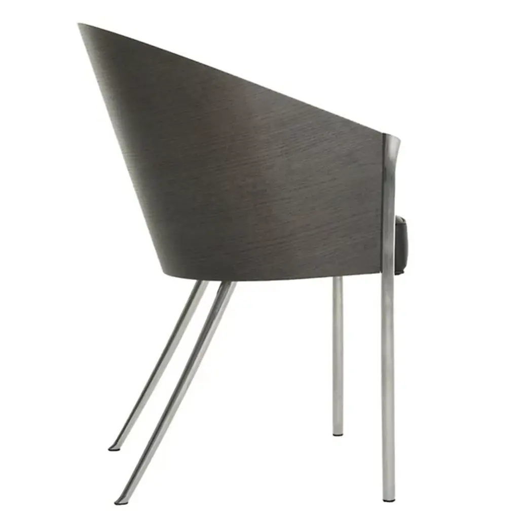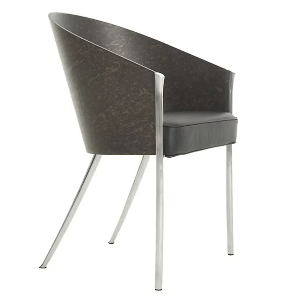 Made in Italy. Designed with a sleek and masculine profile, the King Costes Chair's minimal silhouette enables it to be a design versatile piece suitable for a variety of situations. Whether it's used in the dining room or the home office, the modern armchair brings an element of elegance to any space because of its rounded, wood finished shell, padded leather seating, and polished aluminum leg details. Available in multiple shell finishes, finding the right chair couldn't be easier.