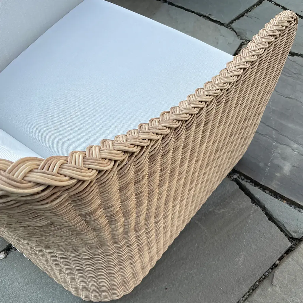 The Quogue collection combines all-weather wicker with a modern upholstered seating surface. This unique design eliminates the need for a cushion. Upholstered surfaces are made from durable, easy-to-care-for Batyline™ mesh. Seats are gently padded with quick-drying reticulated foam. They typically dry in as little as twenty minutes after rainfall.Please Note: Kingsley Bate fabrics, canopies, cushions, covers, special order sling colors, and special order finishes are considered customized and may have longer lead times. These items cannot be cancelled, returned, or exchanged.Please Note:The Quogue collection is intended soley for outdoor use.