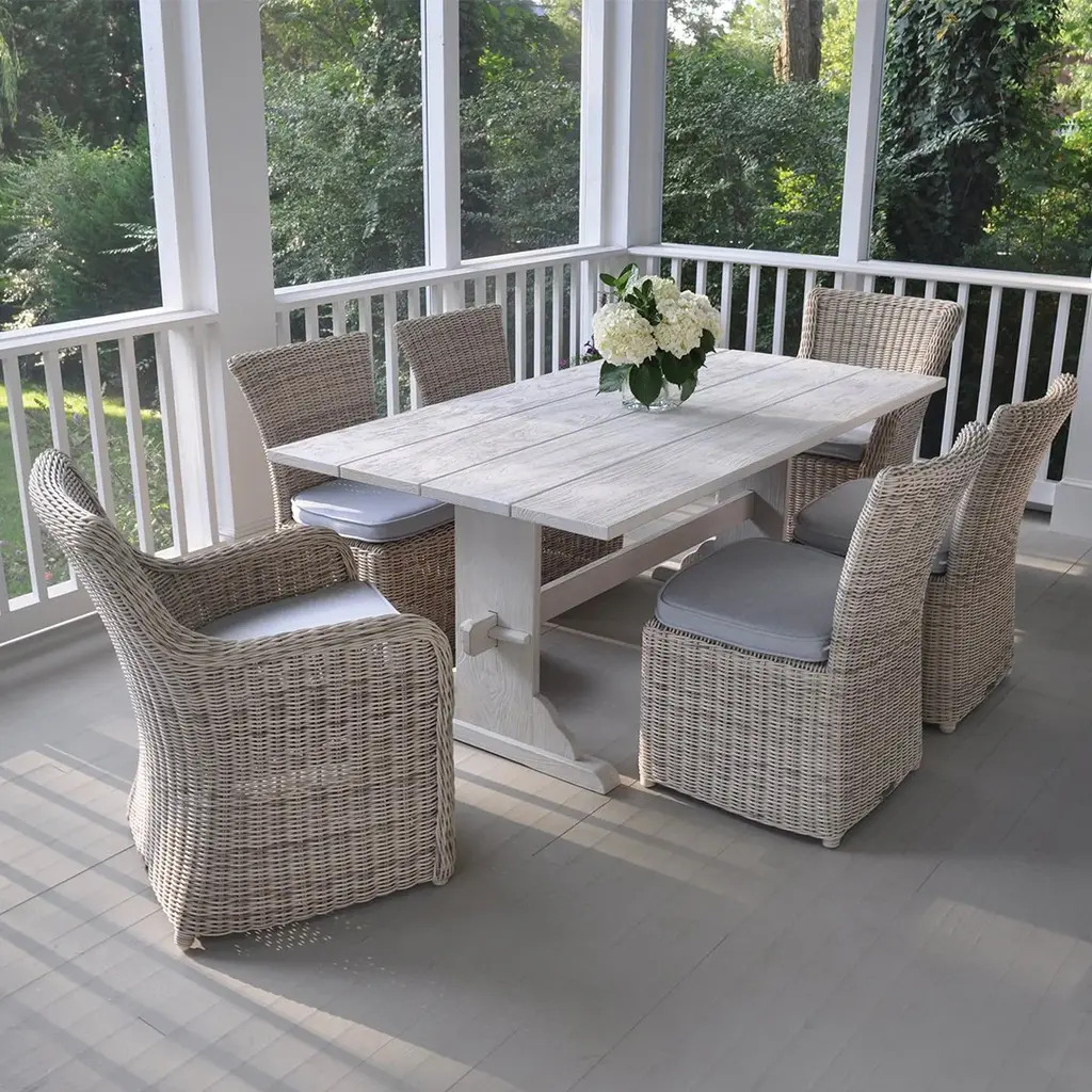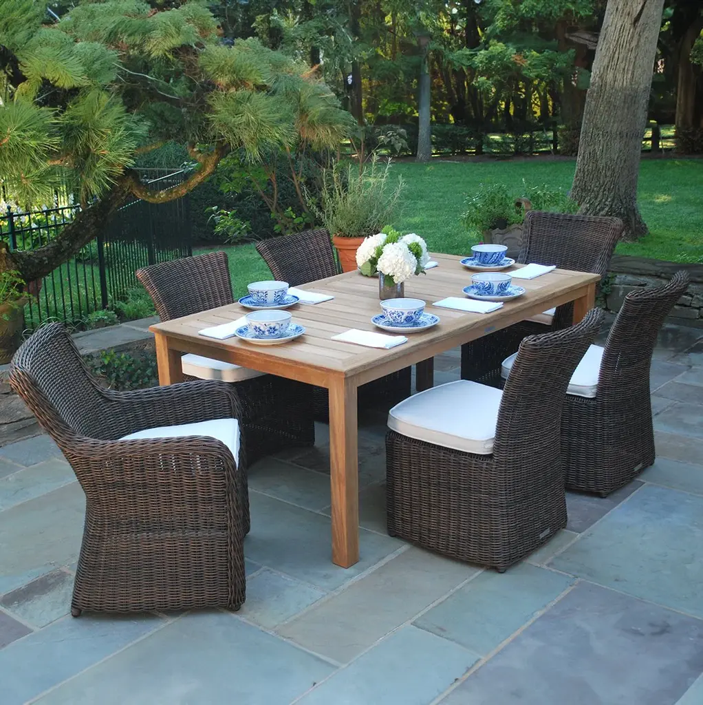 Inspired by the relaxed style of the Hamptons, Sag Harbor is hand woven in a premium, extra-large fiber. That makes it sturdier and more substantial than standard outdoor wicker furniture. The fiber’s variegated tones create a natural appearance that pairs well with an assortment of Kingsley Bate teak tables. Fabrics Note: Additional fabric options are available upon request. Please contact us for a quote: 800-762-5374 or customercare@frontera.com. Please Note: Kingsley Bate fabrics, canopies, cushions, covers, special order sling colors, and special order finishes are considered customized and may have longer lead times. These items cannot be cancelled, returned, or exchanged.