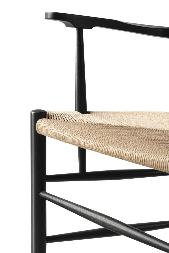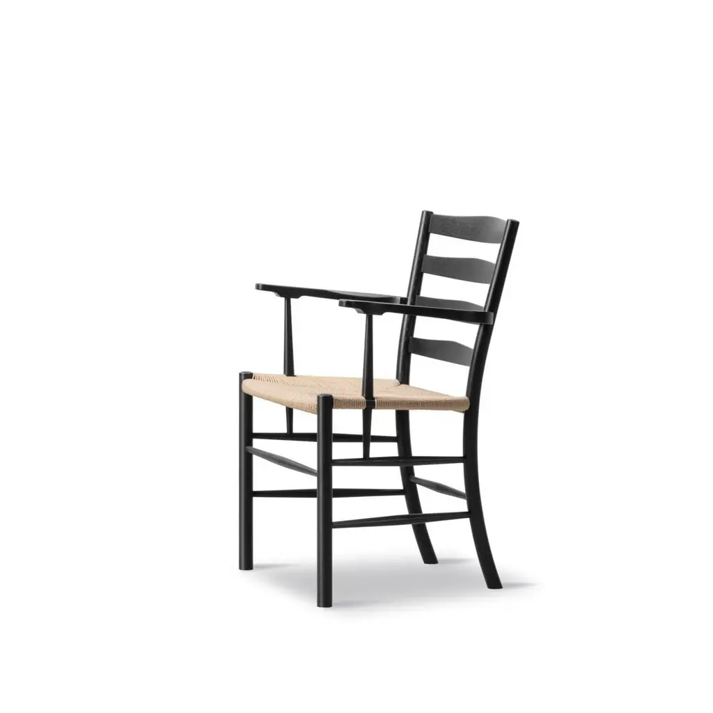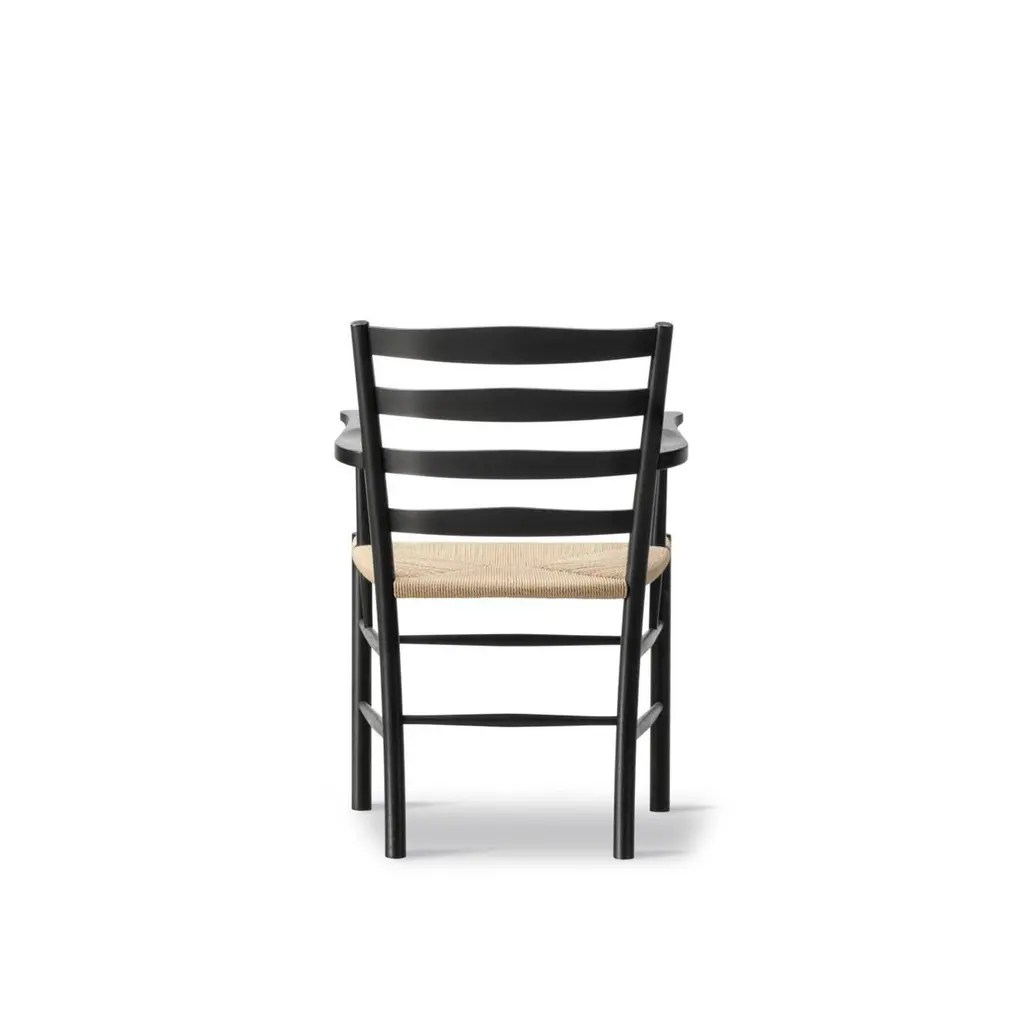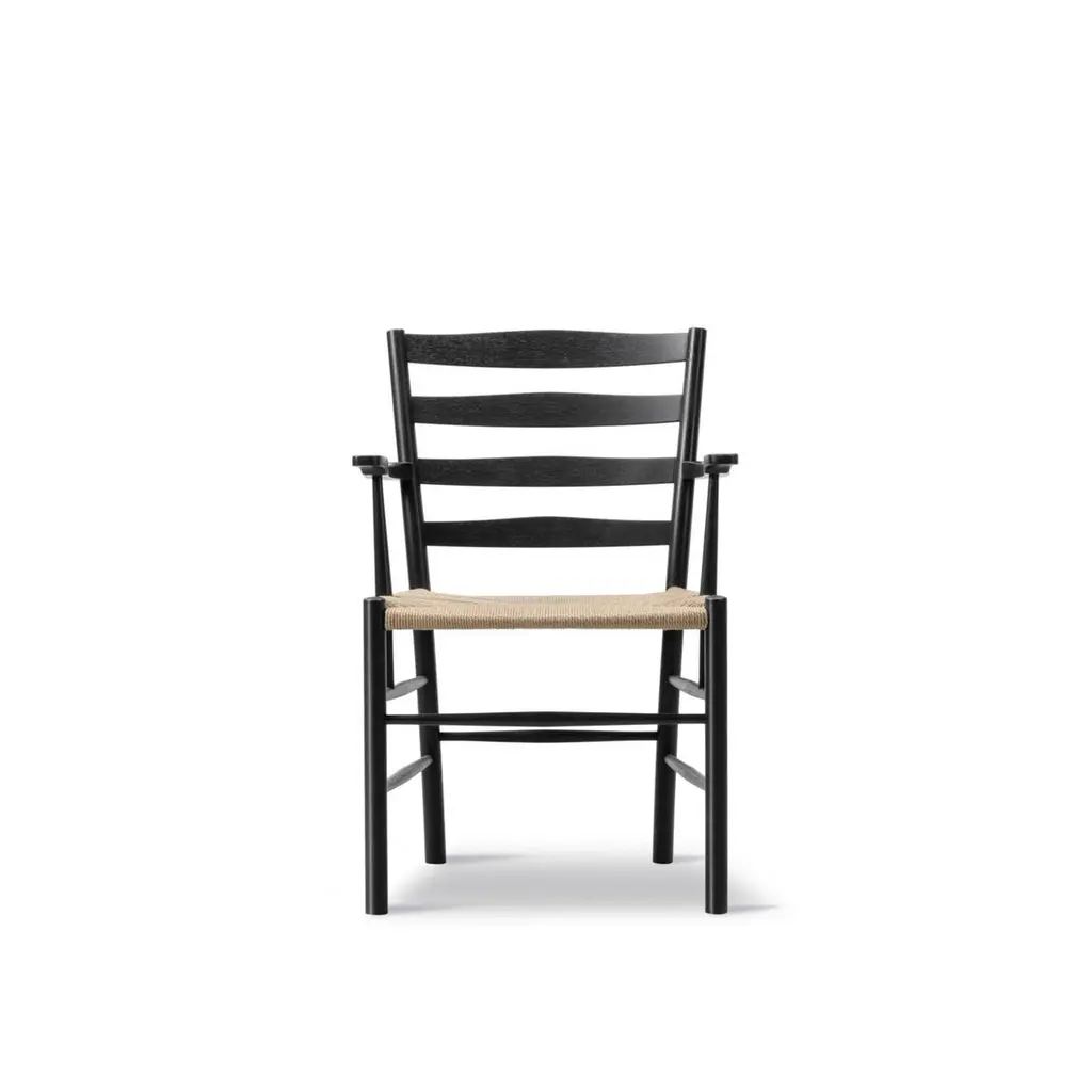 The Klint Chair, designed in 1936, epitomises the philosophy of its creator, Kaare Klint, who laid the foundations for Danish design and inspired great designers such as Børge Mogensen. Serving as a modern adaptation of a traditional English Country Chair, the Klint Chair exudes classic elegance. With its high back and carefully calibrated ergonomics, it becomes an exceptionally comfortable chair suitable for both dining and as a statement of craftsmanship..Black Lacquered Oak and Natural Paper CordWidth: 57 cm / 22.44 inchesDepth: 61 cm / 24.02 inchesHeight: 87 cm / 34.25 inchesSeat height: 45.5 cm / 17.91 inchesWeight: 5.5 kg / 12.13 lbsArmrest height: 68.5 cm / 26.97 inchesDesign year: 1936Designer In 1924, Kaare Klint (1888-1954) co-founded the Department of Furniture Design at the Royal Danish Academy of Fine Arts. He instilled in his students the value of meticulous craftsmanship and principles, including precision, practicality, durability and respect for natural resources.Like its contemporary, the Bauhaus school in Germany, the Danish movement originated from functionalism. However, while Bauhaus celebrated the future, the Klint school was dedicated to refining and modernizing archetypes.
