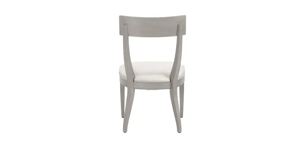 A modern take on a Grecian mainstay, our Klismos oak side chair has a beautiful finish, wire-brushed by hand to bring out the wood grain. It's an elegant look taken for a casual spin, a nod to Old Hollywood made new for today's relaxed dining spaces, able to take on new personalities based on the fabric you use on its upholstered seat. The Klismos oak dining side chair complements many dining styles—and earns plenty of compliments of its own.