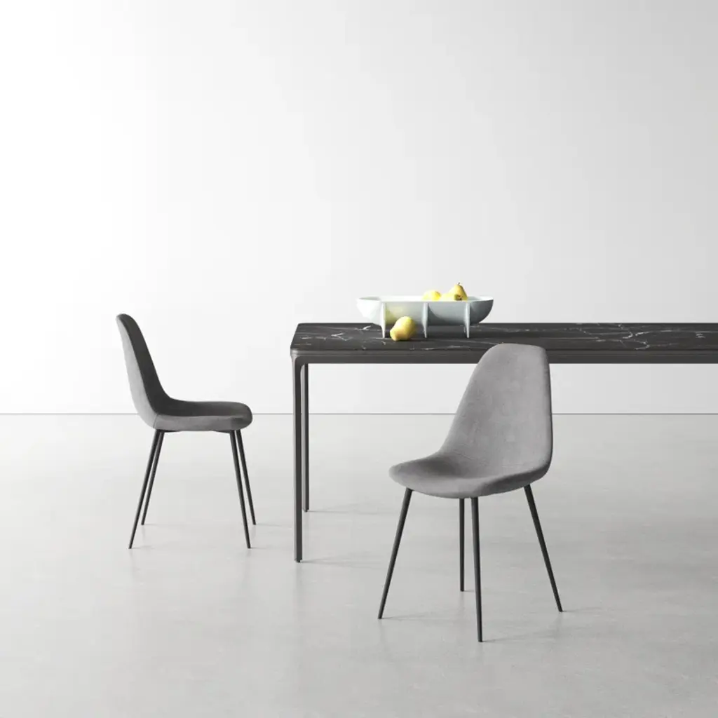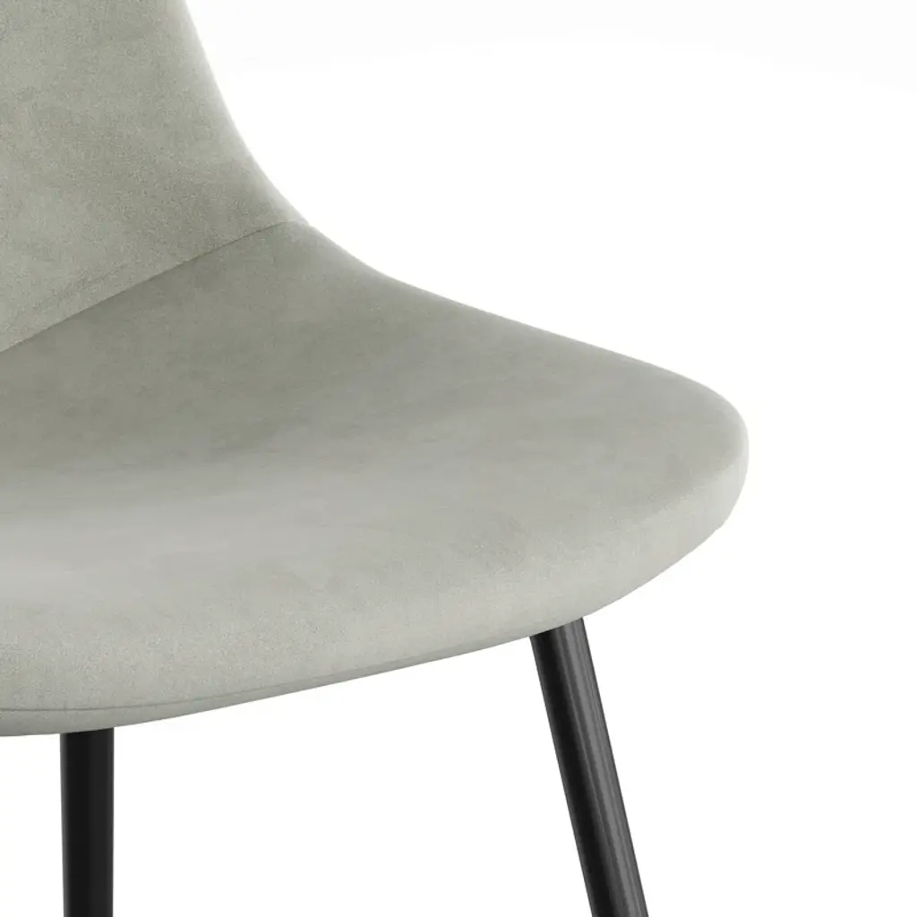 Small in stature, big in style. This pair of side chairs is perfect for a table for two. Luxe velvet upholstery lends an inviting feel to the mid-century bucket seat. Tapered metal legs have a powder-coated black finish. Plus, plastic glides on the feet help protect your floors from scratches and scuffs.