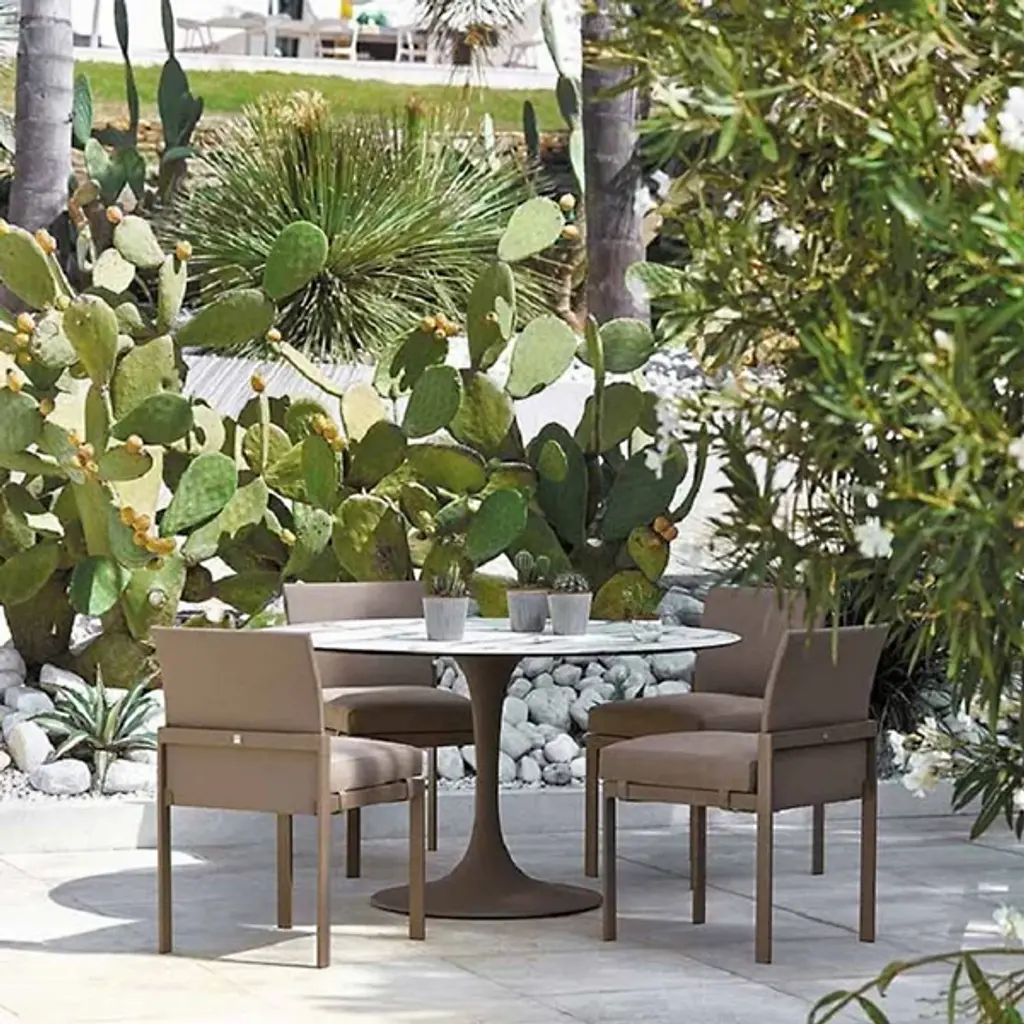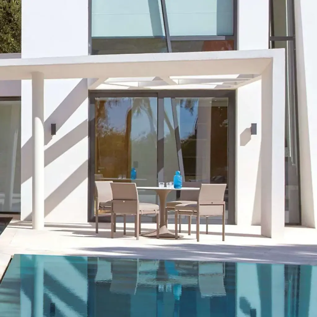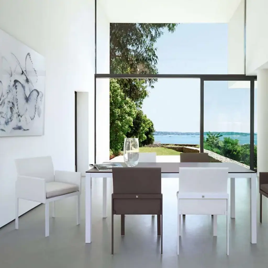 Add a touch of modern elegance to your outdoor space with the KOMFY Outdoor Dining Chair by Sifas. Crafted from lacquered aluminum and canvas woven polyester, this dining chair provides self-supporting comfort with a touch of modern elegance. The seat cushion is 100% Sunbrella® Acrylic, ensuring softness matched with durability. This chair is designed for longevity and resilience against outdoor conditions, making it an ideal addition for your patio, backyard, or picnic area.