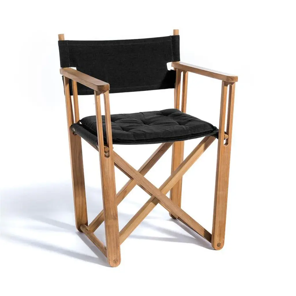 A dining chair that is as beautiful as it is effortless, the Kryss Dining Chair from Skargaarden offers incredible detailing and comfort for both indoor and outdoor use. Designed in teak, with high-quality cushions in both canvas and Sunbrella fabrics, the outdoor version is made to endure both the sun and the rain for worry-free use al fresco. Originally designed for a roof terrace on the Swedish Embassy in Cairo in 1975, this chic seat folds up in seconds for easy storage or transport from indoor dining room to outdoor lounge area. Features
