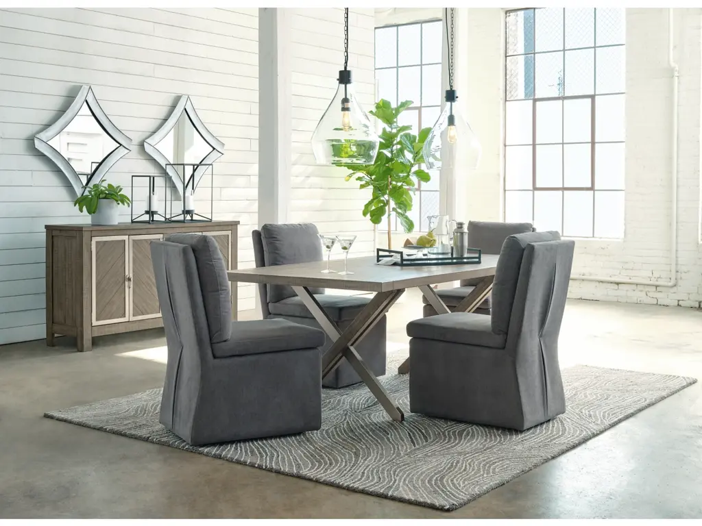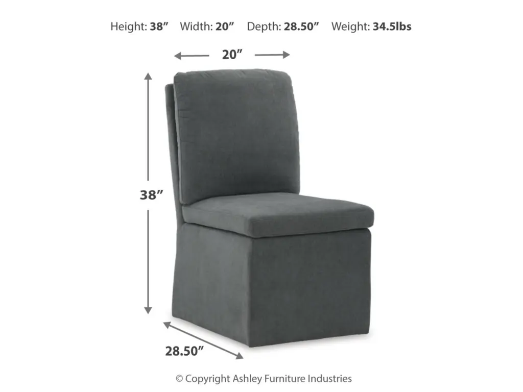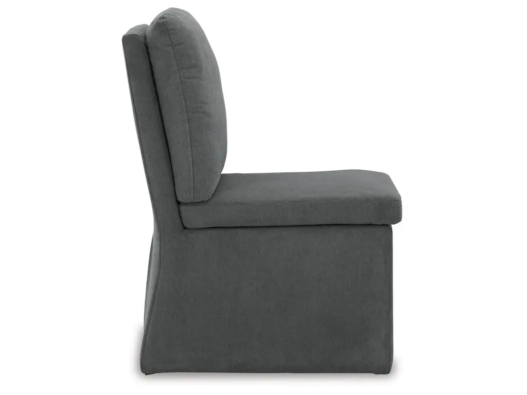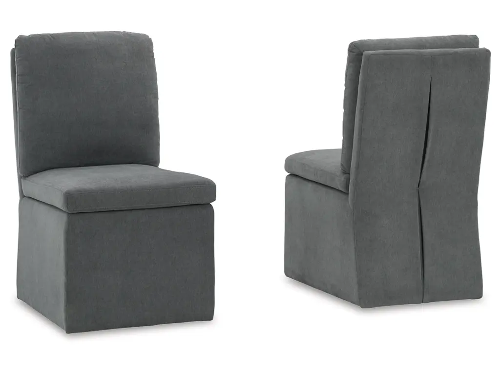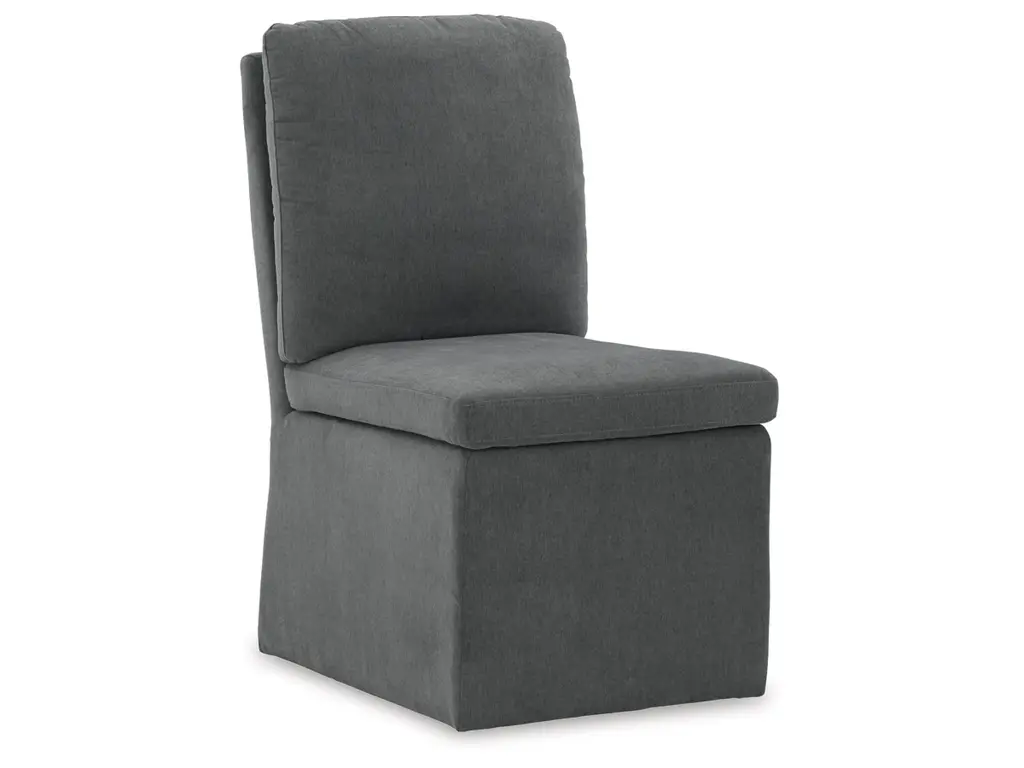Enjoy home-cooked meals in style on the urban contemporary Krystanza dining chair. Add it to a dining table or use as extra seating for impromptu entertaining. Covered in a warm charcoal gray woven polyester fabric with a comfortably cushioned seat and back, this chair features a fully upholstered skirt, a pleated back and casters for easy mobility. It’s designed for modern tastes with an urban vibe.