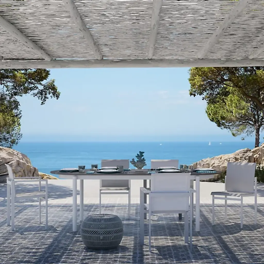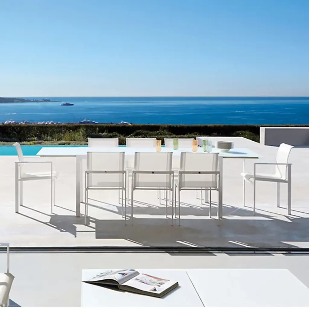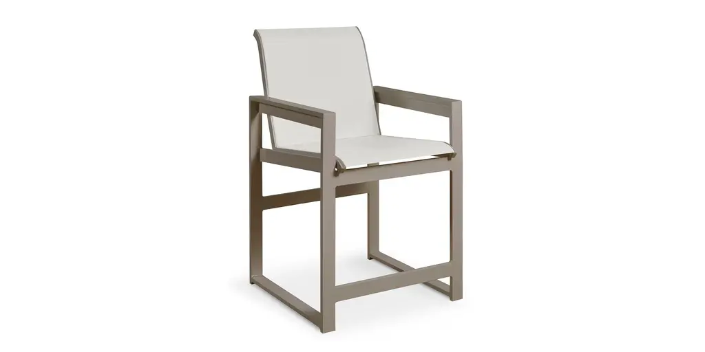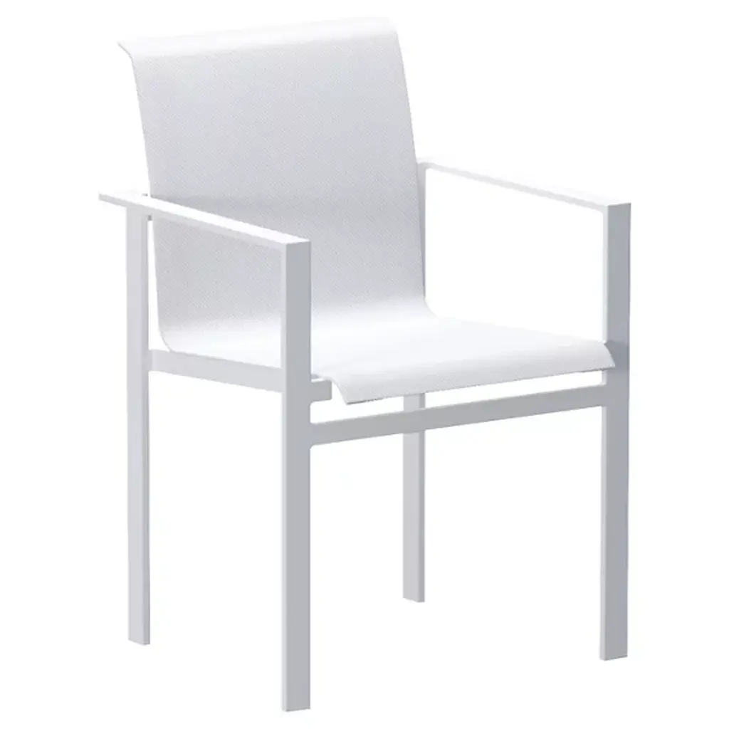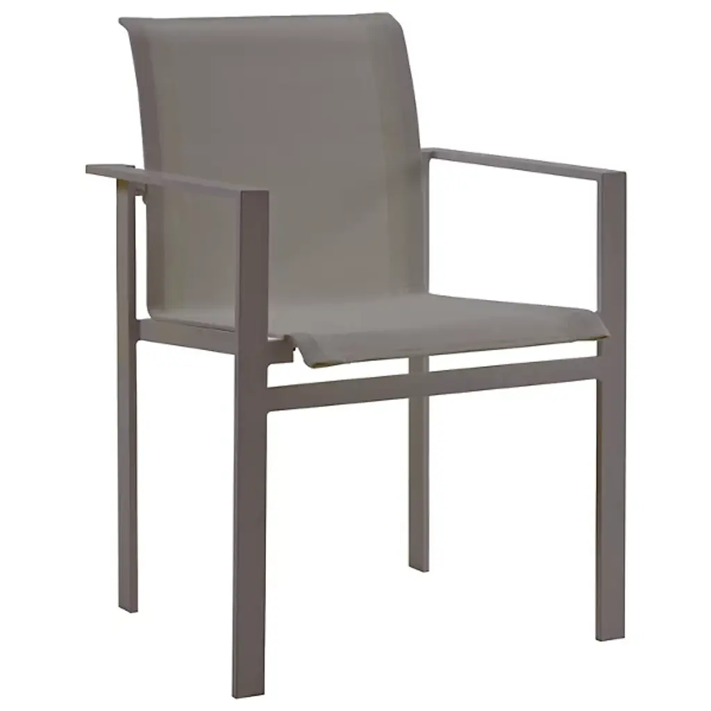 Introduce a touch of contemporary design to your dining space with the KWADRA Outdoor Dining Arm Chair - Set of 2 from Sifas. This chair offers a unique blend of style and functionality, beautifully crafted from lacquered aluminum for a sleek aesthetic that promises to endure. Accented by canvas woven polyester, this dining armchair enhances the sitting experience, providing a superb balance of comfort and durability. Perfect for any modern dining room or kitchen space.