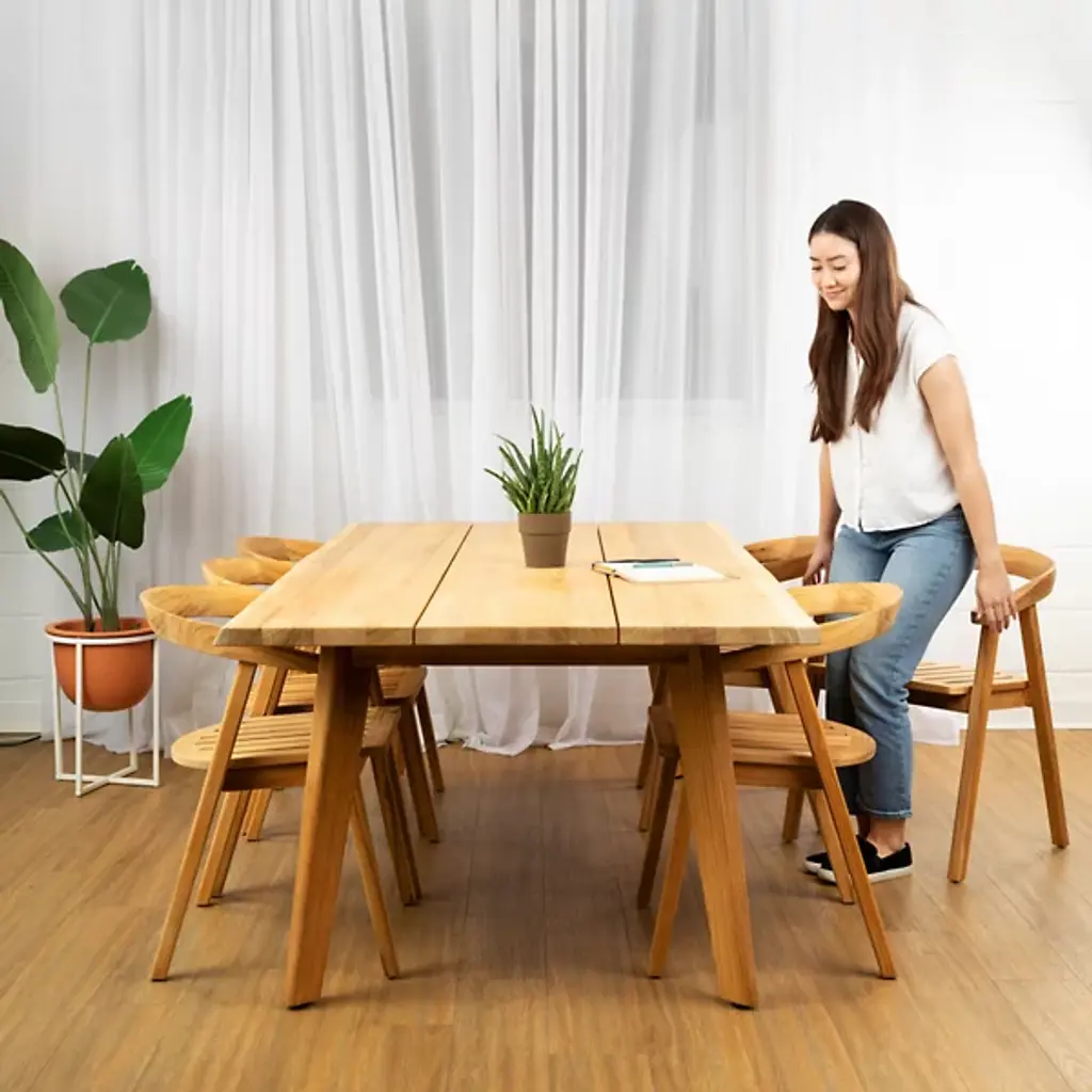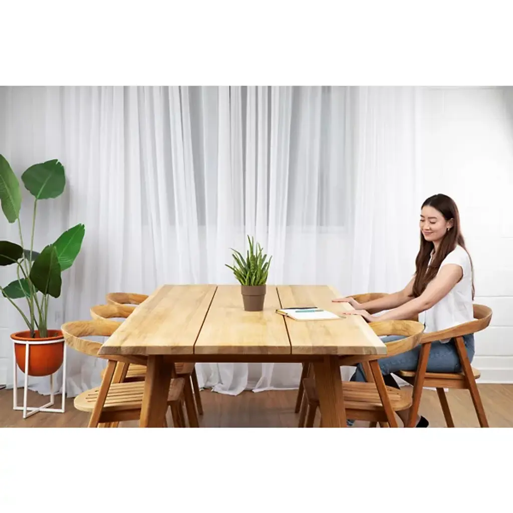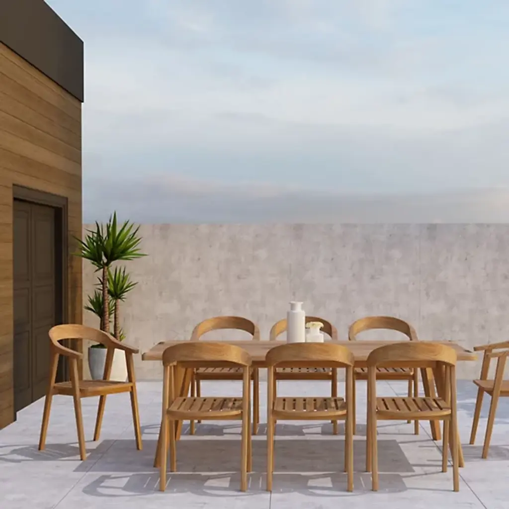 A comforting and stylish modern piece, the La Costa Teak Barrel Back Outdoor Dining Armchair from Hi Teak elevates the décor of your modern patio spaces. Made of natural and solid sand teak wood, this piece consists of a set of four gently angled legs for a sturdy construction and experience while in use. The backrest and armrests match the contours of the human body as they gracefully curve around, formed from a single piece.