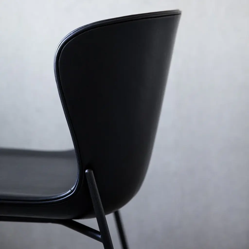 Friends and Founders proudly present "La Pipe" chair or the pipe chair if you prefer. This chair collection features a new soft low lounge chair, a dining chair, counter and bar stool. La Pipe is the result of designer Ida Linea Hildebrand's passion for refined forms and strong silhouettes combined with Friends and Founders knowledge about modern production with strong focus on hand craftmanship and detailing. La Pipe Chair is fully upholstered including piping. Piping colour always same as back material. Frame available in powder coated black and brass plated steel. Chrome finish and stacking pad (available on request) is recommended to avoid marks on seat. Includes plastic gliders and felt gliders + 10 USD / chair.