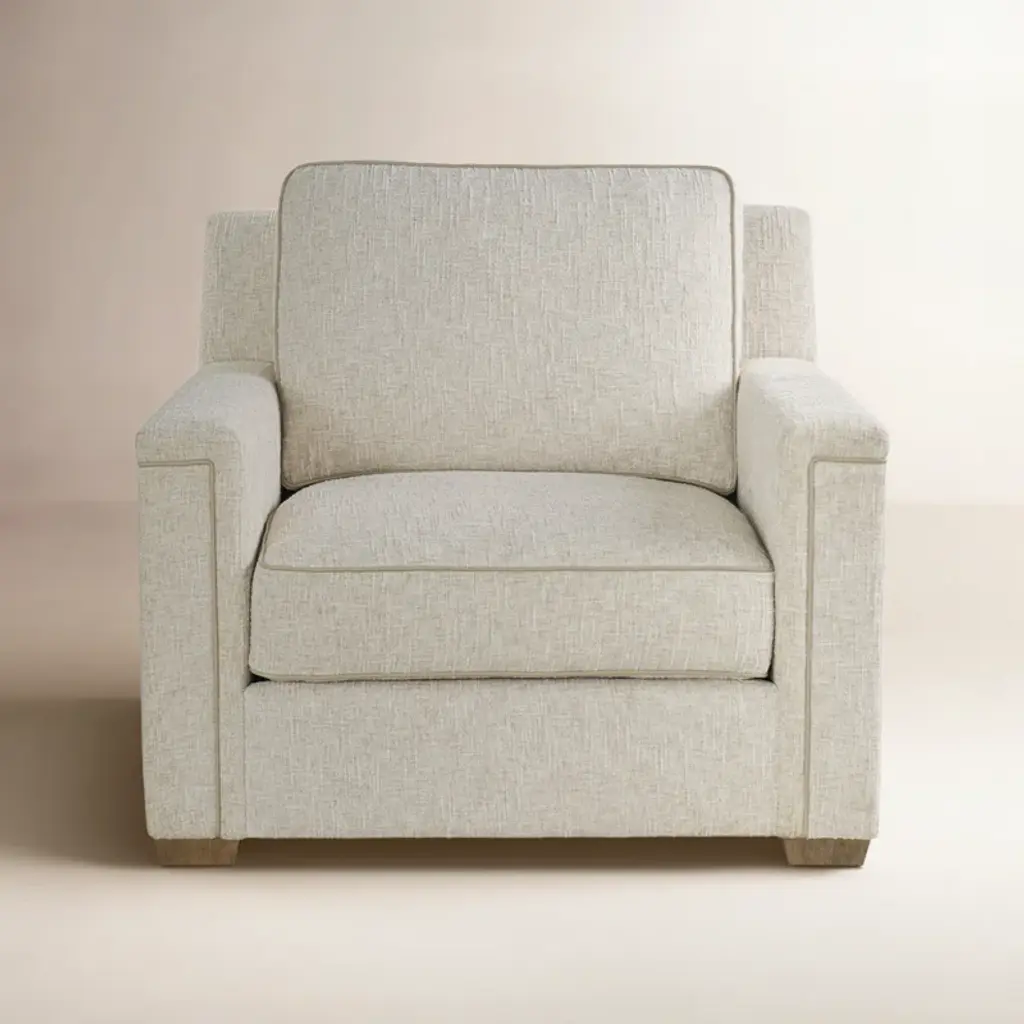 Exclusive to One Kings Lane: This style features an elegant track arm, making it a perfect fit for any outdoor aesthetic. It is upholstered in Inside Out, an eco-friendly UV high-performance fabric that repels stains, spills, bacteria, and mold. Constructed of marine-grade birch and teak, an outdoor slat suspension system, and reticulated foam cushions featuring open cell foam that allows water to drain, ensures comfort and easy maintenance. Each style includes a custom outdoor cover constructed of heavy-duty Sunbrella canvas with elastic at the bottom to ensure a proper and snug fit. Each piece is handcrafted by skilled artisans in High Point, NC.