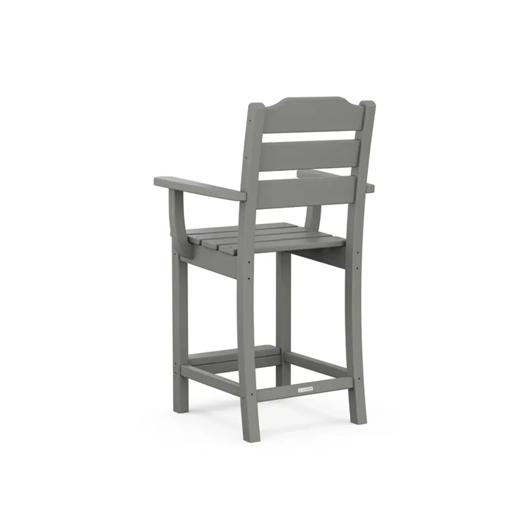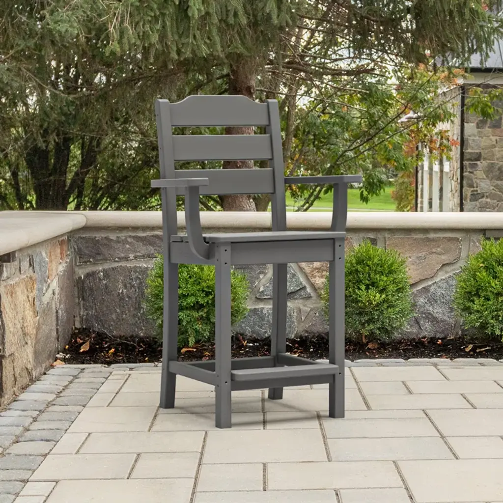 The lakeside counter armchair is a wonderful addition to any outdoor dining space. This stylish seating option would be the perfect companion for a counter-height farmhouse table; mix a few of these chairs with some lakeside counterside chairs and gather them around this type of table to make a complete set. This chair is made from durable HDPE lumber, which can easily cope with bad weather and other environmental stressors. Your porch, patio, or deck will only benefit from this lovely chair with its clean lines and gentle curves.