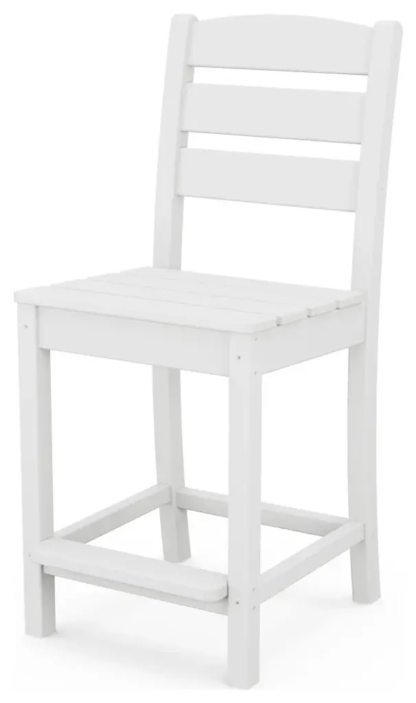 When you want an outdoor dining chair that will stand the test of time and look great while doing it, look no further than the Lakeside Counter Side Chair. This all-weather chair is the perfect seating option for your porch, patio, or deck. It's made with durable HDPE lumber, so it will stand up to harsh weather and other environmental stressors. The chair's arched back and convenient footrest will ensure that you can sit in comfort every time you use it. This chair can be paired with any counter-height dining table from the Lakeside Collection to make a beautiful all-weather set that will easily enhance the look of your outdoor space.