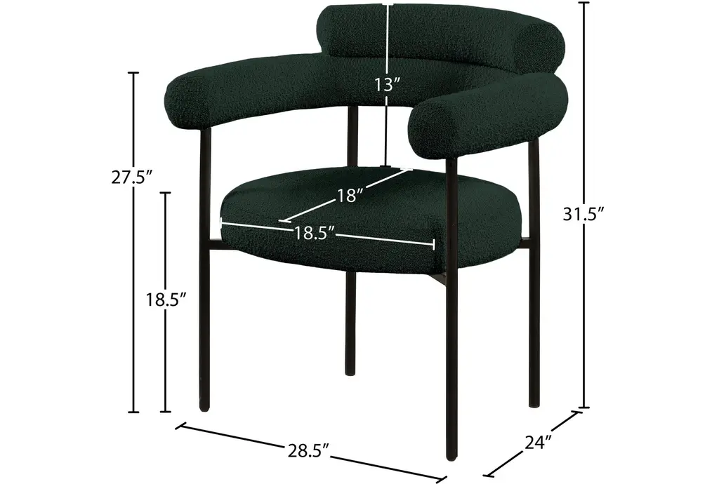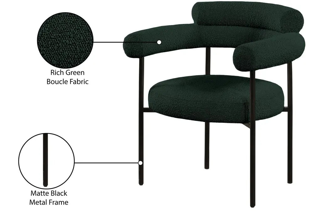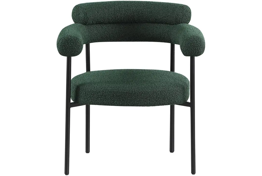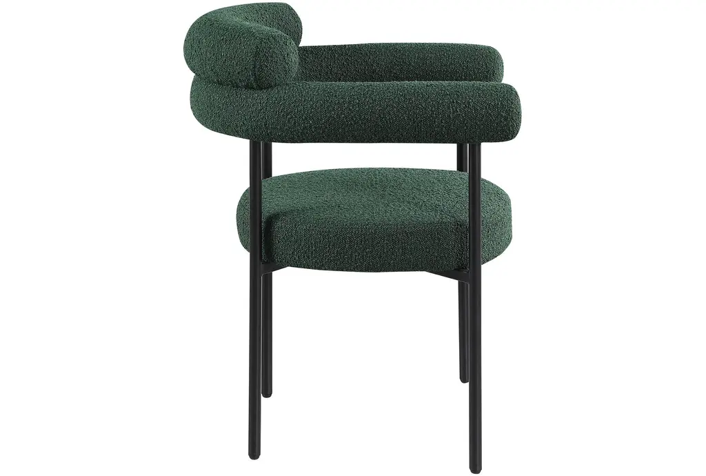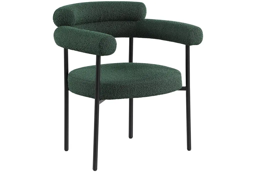 Laki Green Boucle Upholstered Dining Armchair With Black Leg Frame Set Of 2