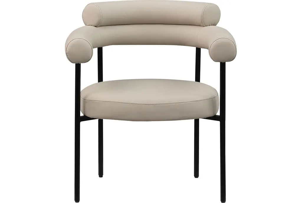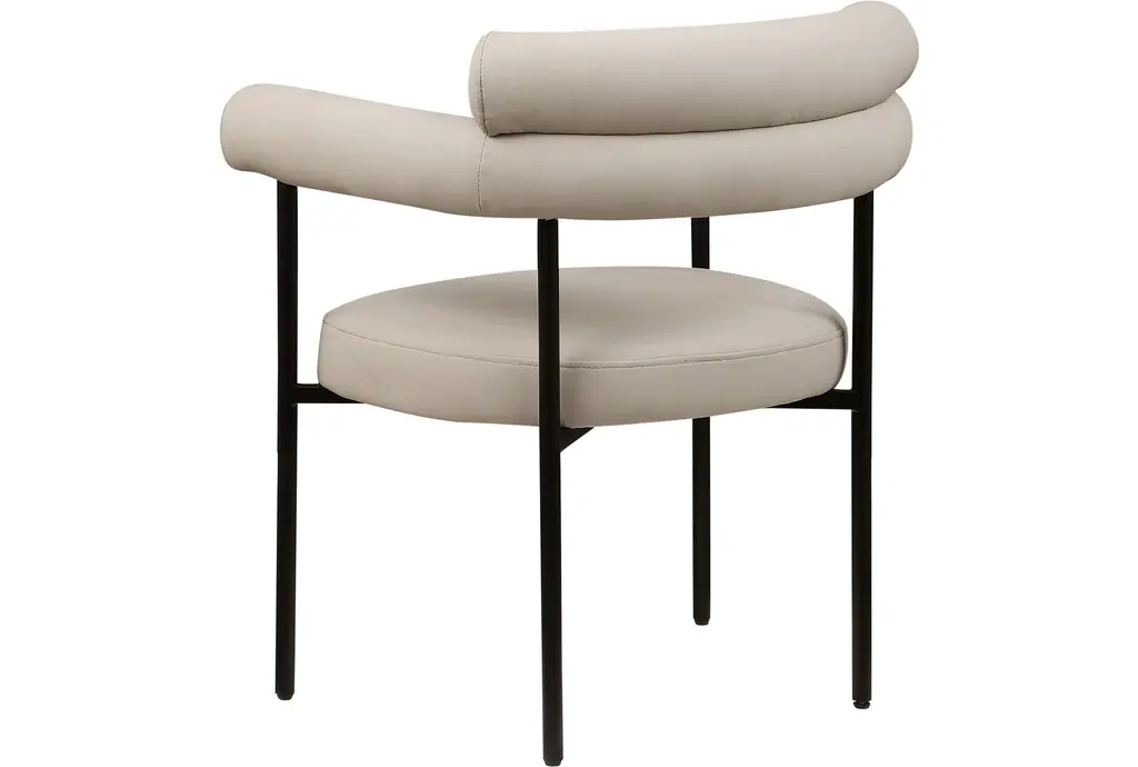 Laki Taupe Vegan Leather Fabric Dining Armchair With Black Leg Frame Set Of 2