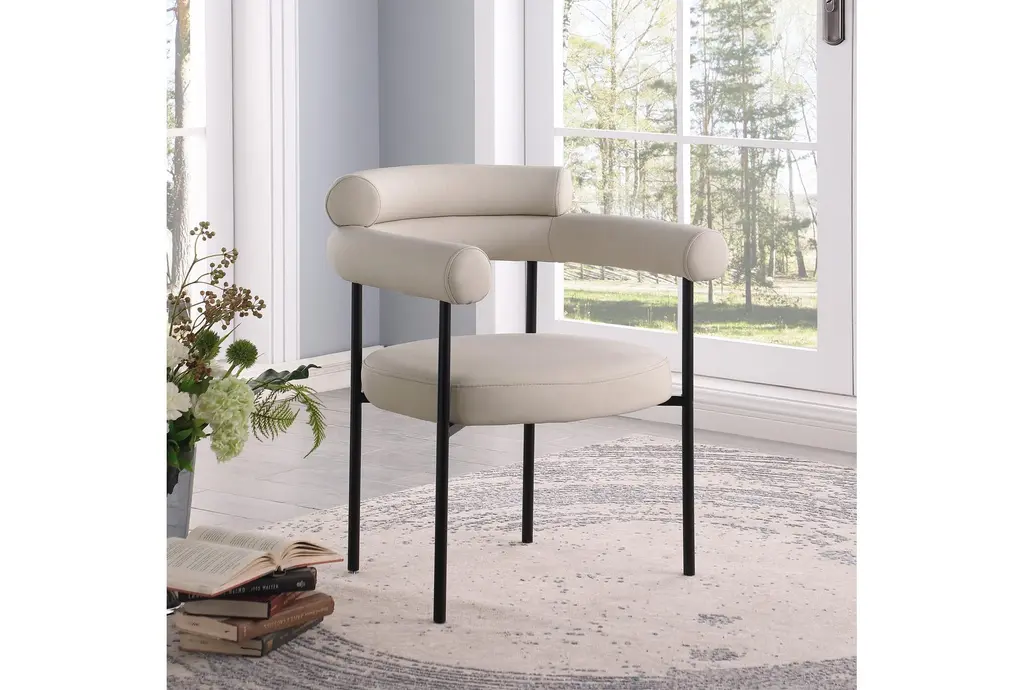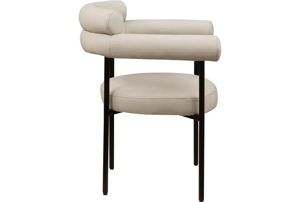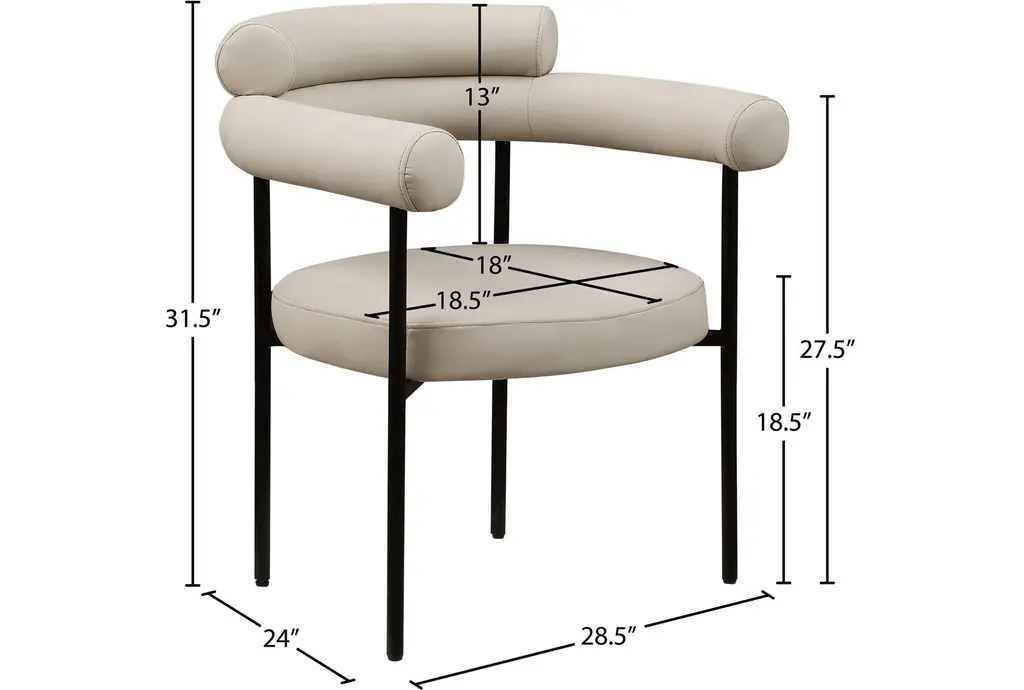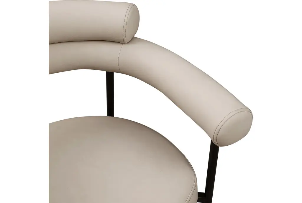 Enhance your dining experience with the Laki Taupe Vegan Leather Fabric Dining Arm Chair Set. These modern chairs feature a sleek design with a curved shape and comfortable armrests, making them perfect for any dining room or kitchen.