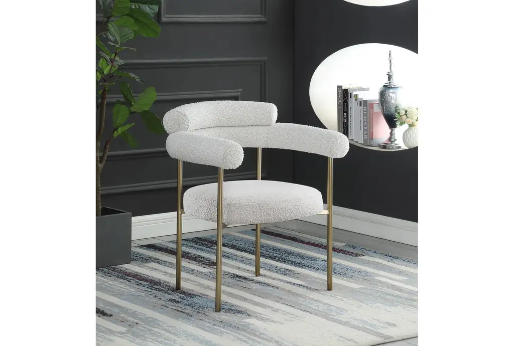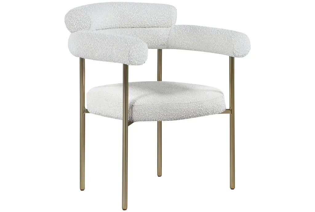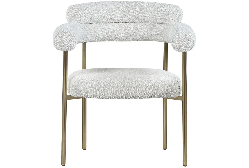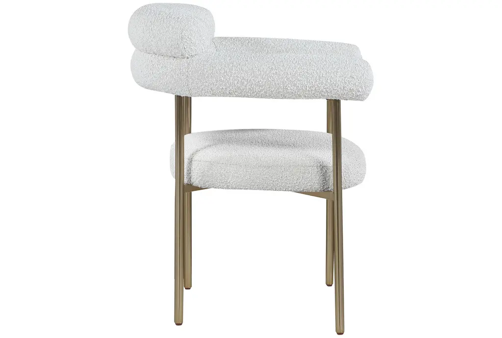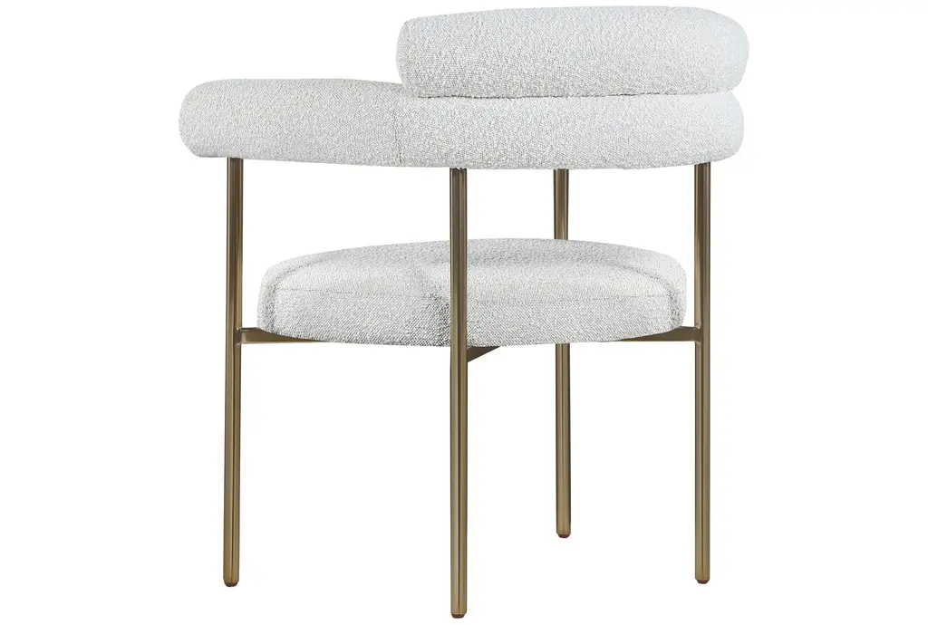 Laki White Boucle Upholstered Dining Armchair With Brass Leg Frame Set Of 2