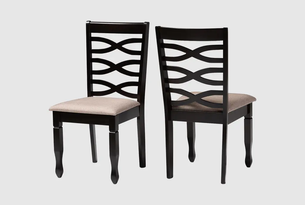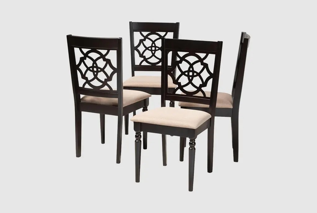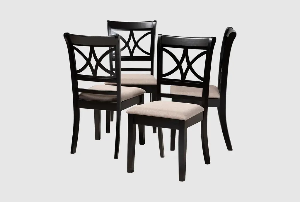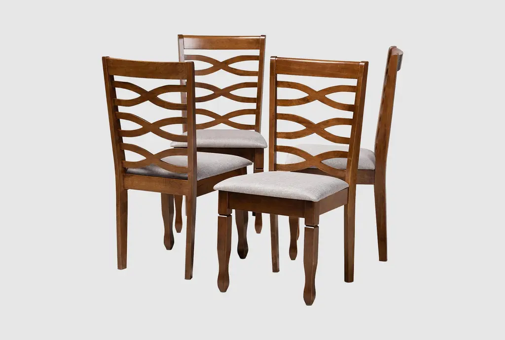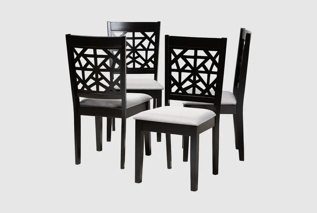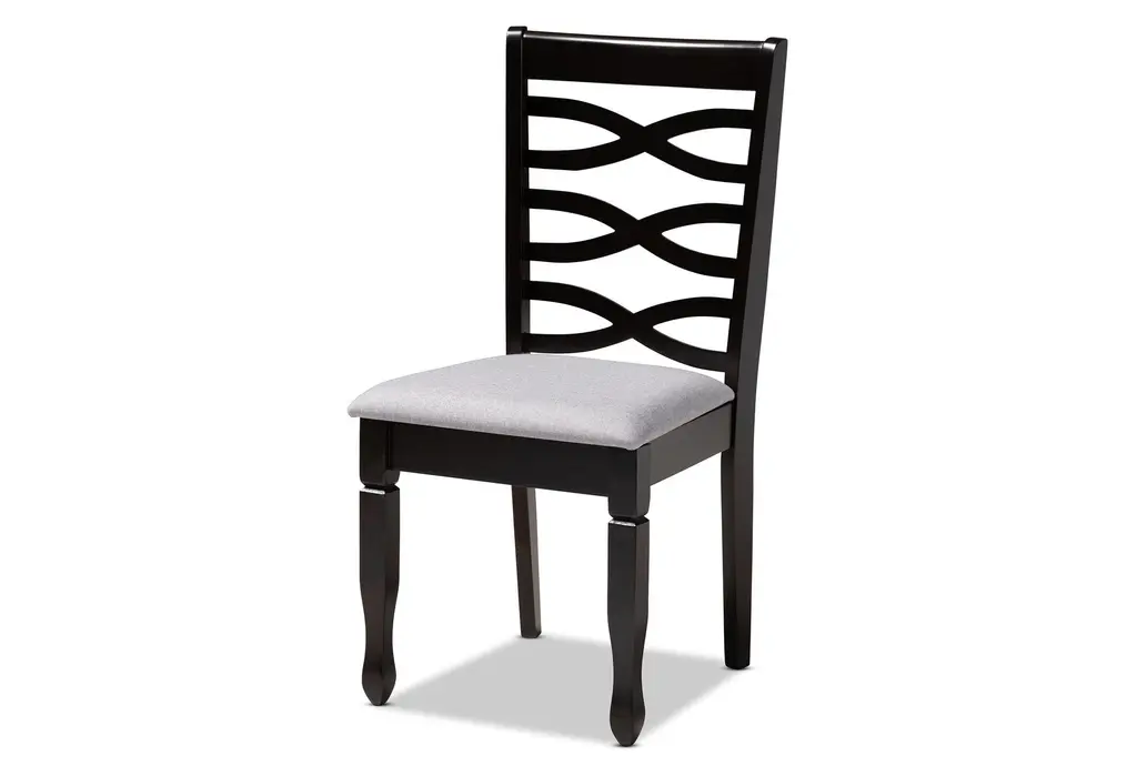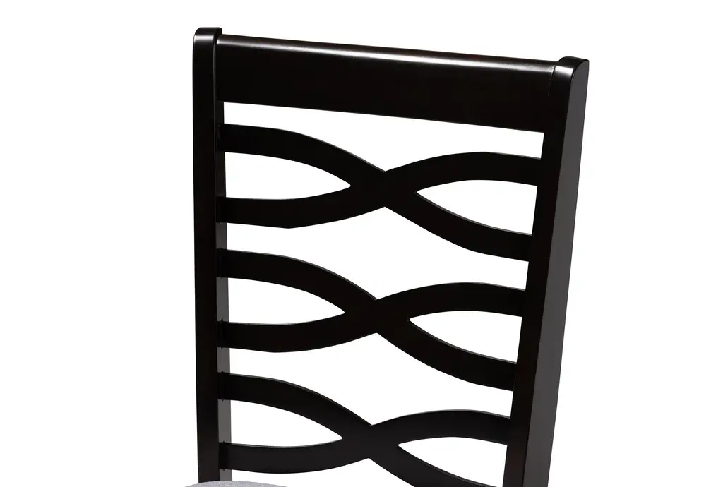 The Lana Gray Fabric Upholstered & Espresso Brown Finished Wood Dining Chair Set Of 4 brings a touch of modern elegance to your dining space. These chairs are designed with a contemporary flair, featuring a sophisticated gray fabric upholstery that complements the rich espresso brown finish of the rubberwood frame. Perfect for any dining room, this set of four chairs offers both style and comfort.