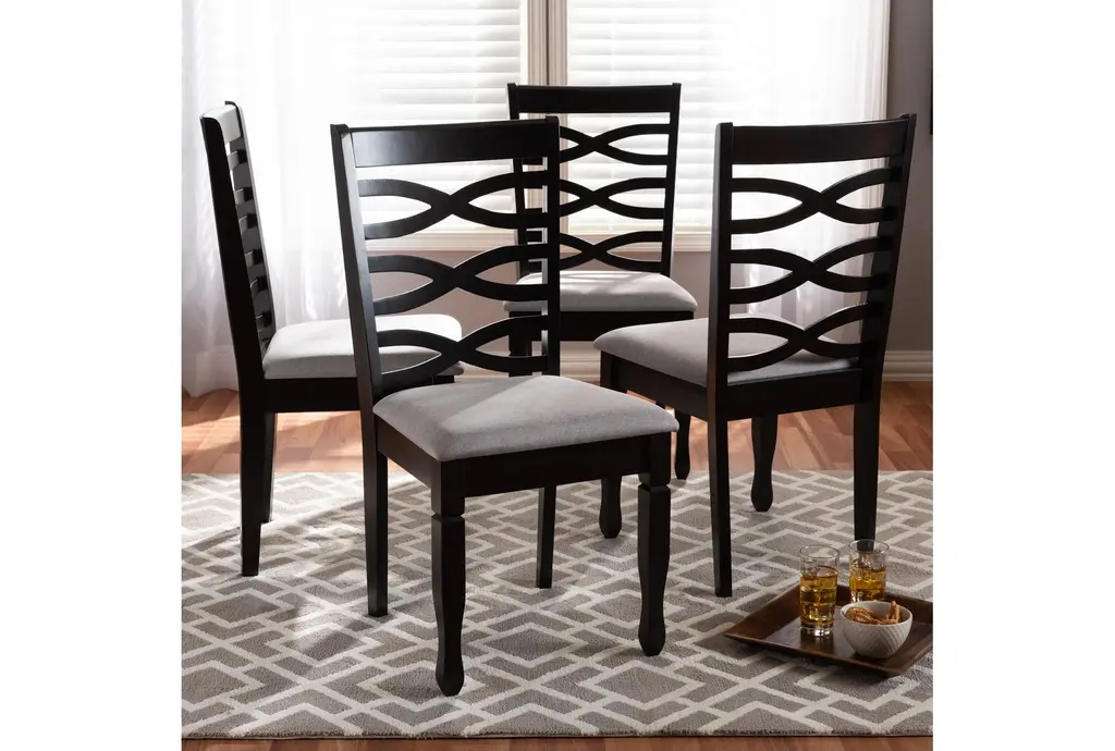 Lana Gray Fabric Uph & Espresso Brown Finished Wood Dining Chair Set Of 4 | Armless