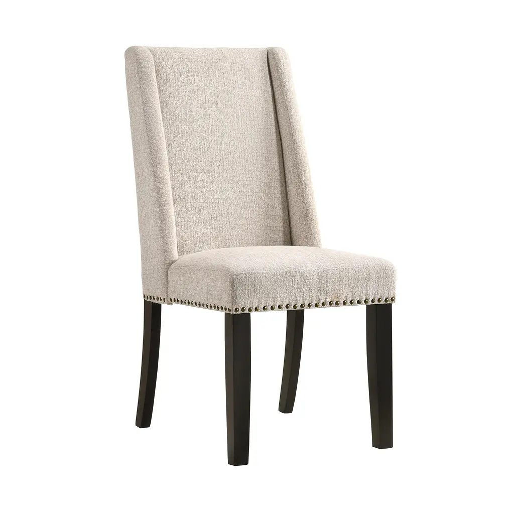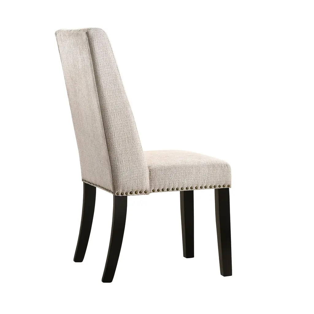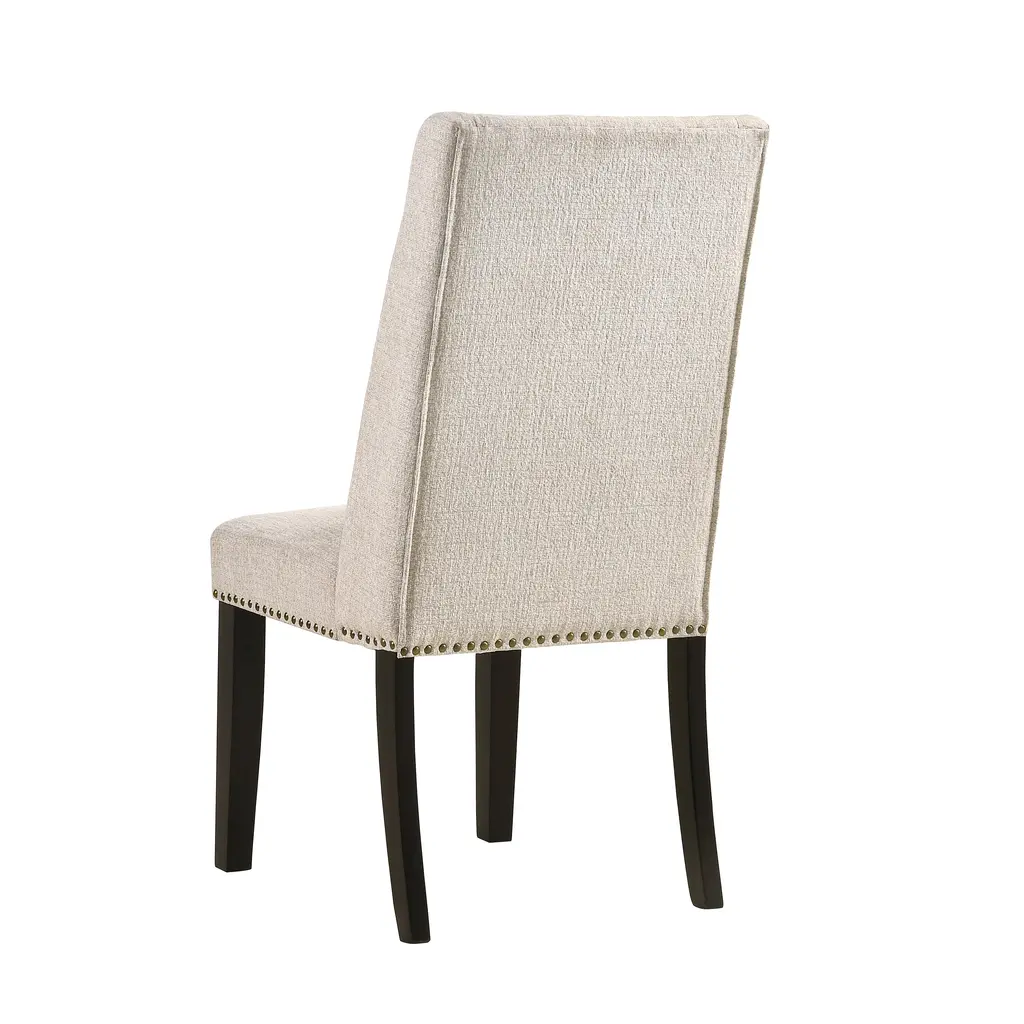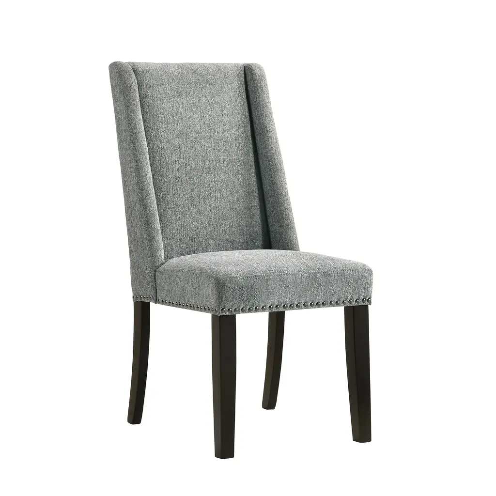 Our set of 2 Lana Upholstered Dining Chairs are a comfortable and chic option for your dining room and to add flexible seating to your home. Each chair features an upholstered seat in durable, attractive polyester fabric with a trim of nail heads around its base paired with a dark, espresso-stained wooden legs. Their luxurious palette and finish makes them easy to mix in with your existing furniture and style. Make sure your family and friends feel at home while you share a meal, a drink, or coffee. Use them in your home office, living room, around a dining table or breakfast space for ultra-comfortable seating for your family and friends. Polyester upholstery is easy to spot clean as needed. Always test any cleaning agent on an area that won't be seen to ensure it's safe to use on the fabric more broadly.