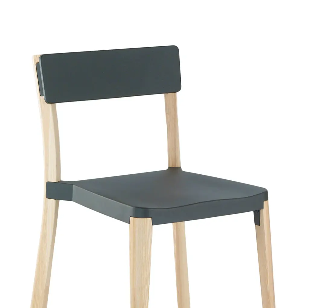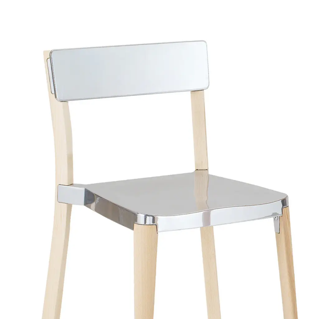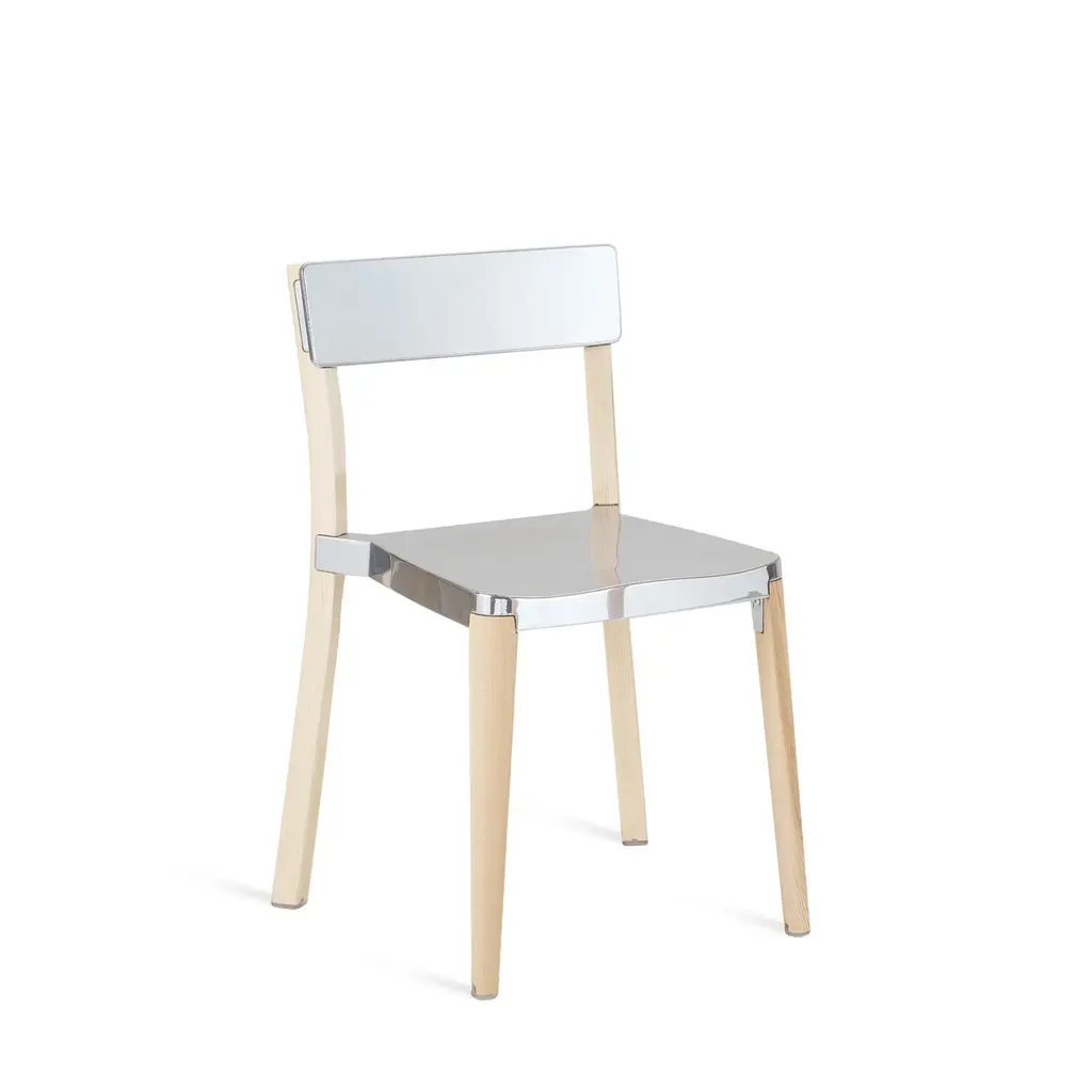 Lancaster by Michael Young, 2010 Lancaster chairs and stools combine seats and backs in die-cast 80% recycled aluminum with a solid ash frame. Choose from 3 seat finishes and 2 wood finishes. The wood is sustainably sourced from local forests and handcrafted by our Amish neighbours over in Lancaster, Pennsylvania. Seat and back pads available. Chairs stack 6 high. Made in USA. The Lancaster family also includes solid ash dining tables.