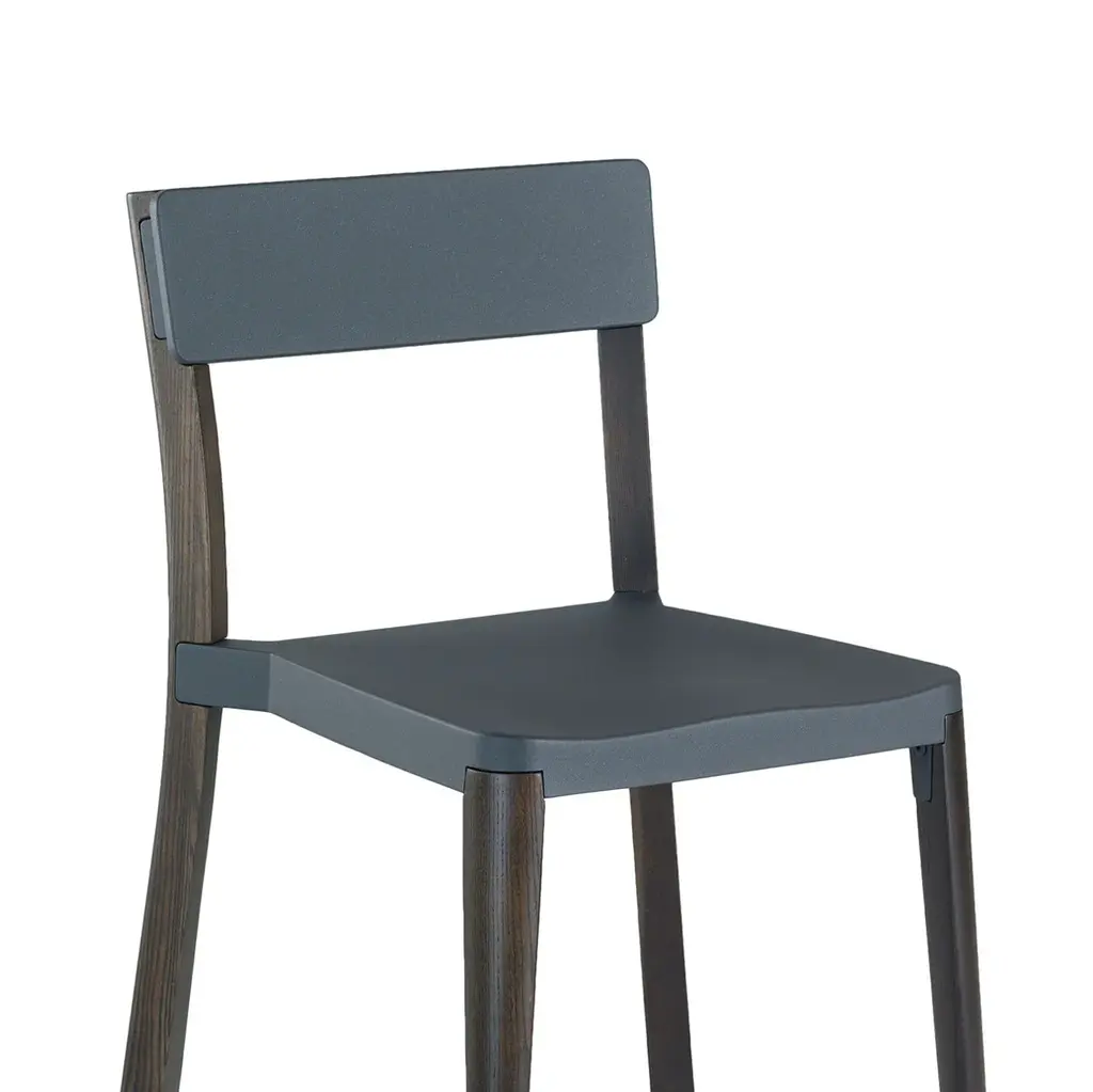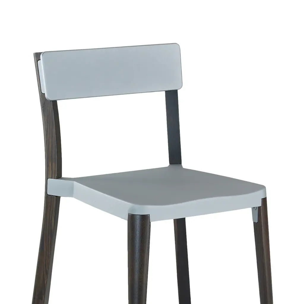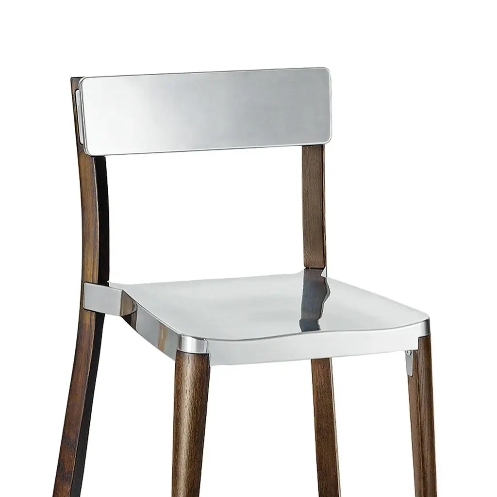 Lancaster by Michael Young, 2010 Lancaster chairs and stools combine seats and backs in die-cast 80% recycled aluminum with a solid ash frame. Choose from 3 seat finishes and 2 wood finishes. The wood is sustainably sourced from local forests and handcrafted by our Amish neighbours over in Lancaster, Pennsylvania. Seat and back pads available. Chairs stack 6 high. Made in USA. The Lancaster family also includes solid ash dining tables.