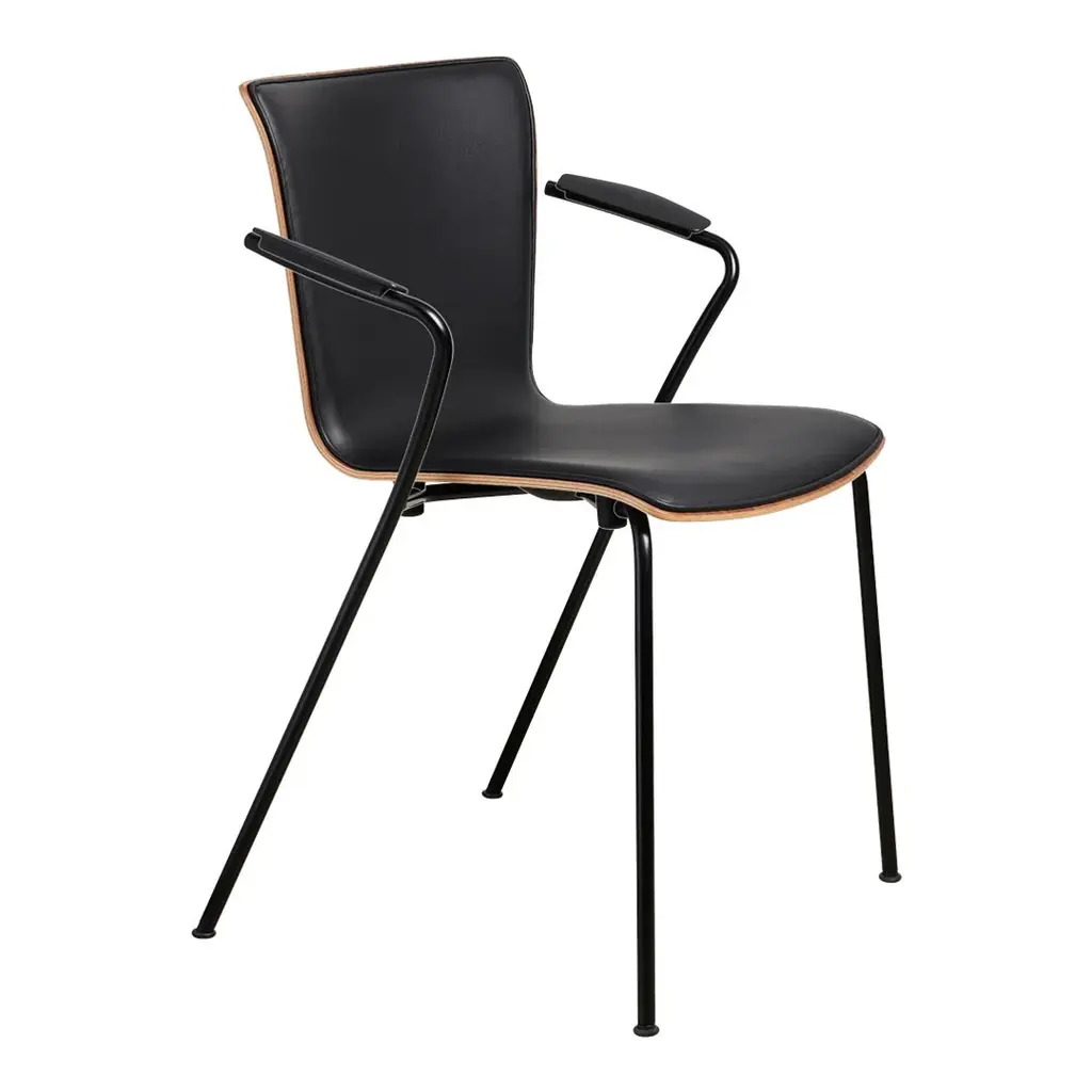 The Langue Chair stands out with its distinctively curved seat, modeled after the shape of a tongue. It emphasizes a flowing, organic silhouette that is designed to follow the bodys shape. This organic shape starts wide at the front, offering ample seating space, and tapers as it moves toward the back, almost hugging the body for support. The back of the chair curves gently to cradle the spine. Available with a steel base in black and armrests in 4 oak finishes. The soft upholstery version includes a foam layer, making it ideal for long dining or work sessions. Upholstered in a range of high performance fabrics for even more added comfort.