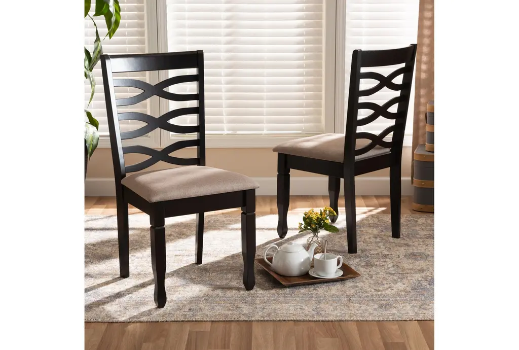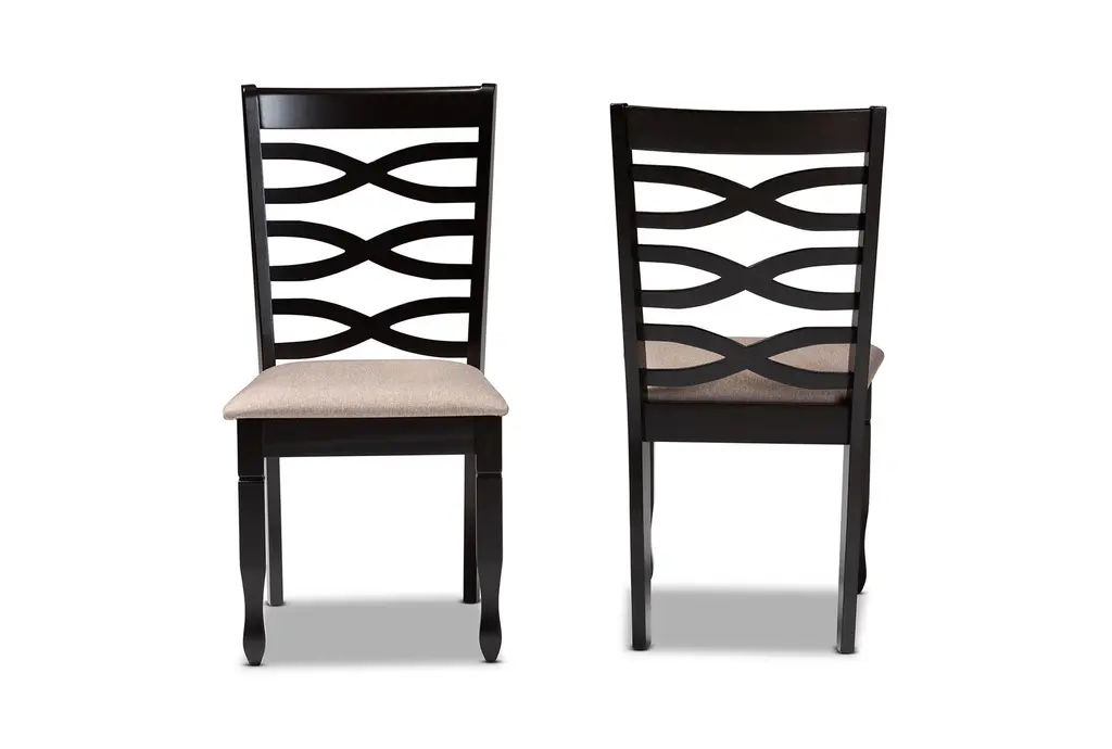 Lanier Modern Sand Fabric Upholstered Dark Brown Wood Dining Chair Set Of 2 | Oak | Spindle | Armless