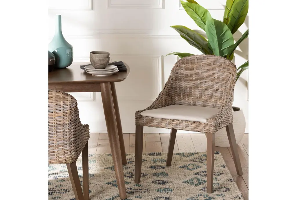 Lara Bohemian Grey Kubu Rattan & Mahogany Wood Dining Chair