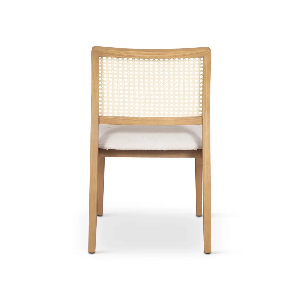 A touch of retro charm meets modern Brazilian design in the Larissa Side Chair from Urbia, a piece of timeless simplicity. Crafted in Brazil, this versatile chair features a clean-lined, solid Tauari wood frame and an airy, pressed cane back. The generous upholstered chenille seat ensures lasting comfort, making it a stylish addition to any dining room, living area, or entryway. A perfect fusion of classic materials and contemporary design, it’s a welcoming seat for any occasion. Highlights: