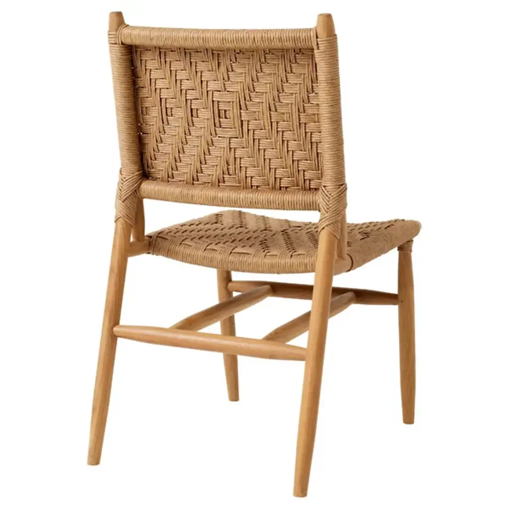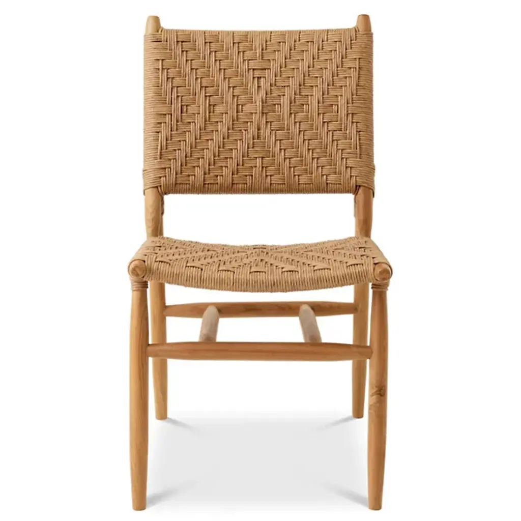 Unwind in style with the Laroc Outdoor Dining Chair, Set of 2 by Eichholtz. This elegant duo blends the rich, natural warmth of sustainably sourced teak with the durability of woven polyethylene. The teak frames, responsibly harvested from managed forests, offer enduring appeal, while the weather-resistant polyethylene seats and backs offer lasting comfort and easy maintenance. These chairs bring subtle sophistication to any setting, great for both coastal and contemporary outdoor design.