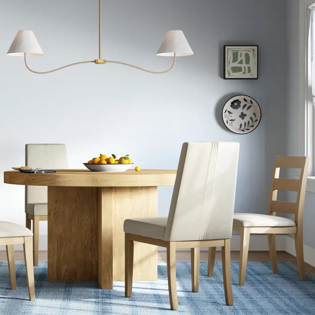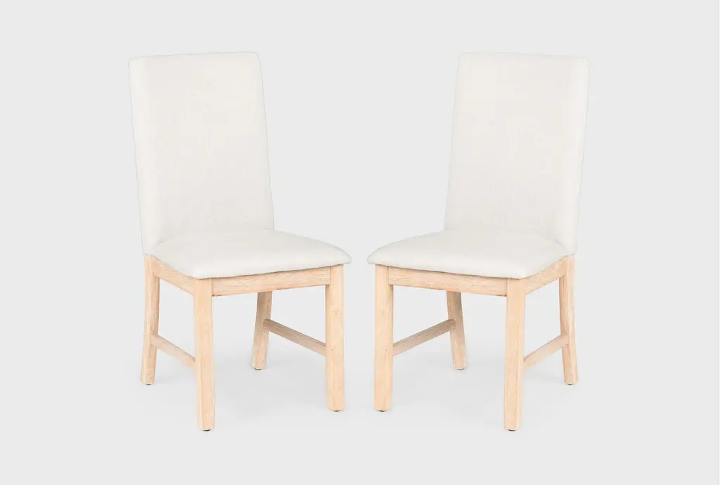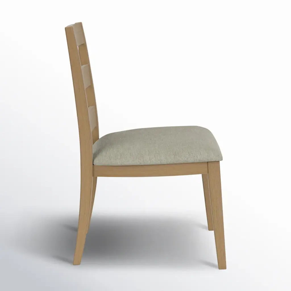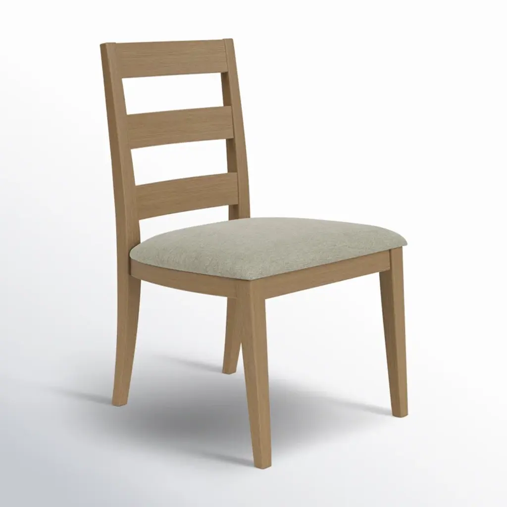 This pair of side chairs has a classic silhouette and is the perfect way to complete your table for two. Each is made from kiln-dried solid wood and features a timeless ladder-back design and a pale oak finish that highlights the natural wood grain. Foam-filled cushions are wrapped in a polyester blend upholstery (spot clean as needed), and plastic glides on the feet protect your floors from scratches and scuffs.
