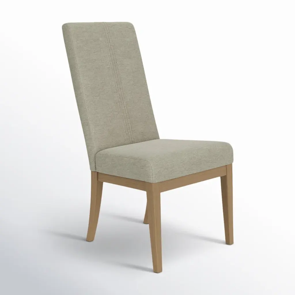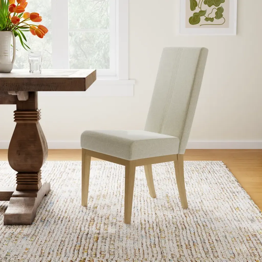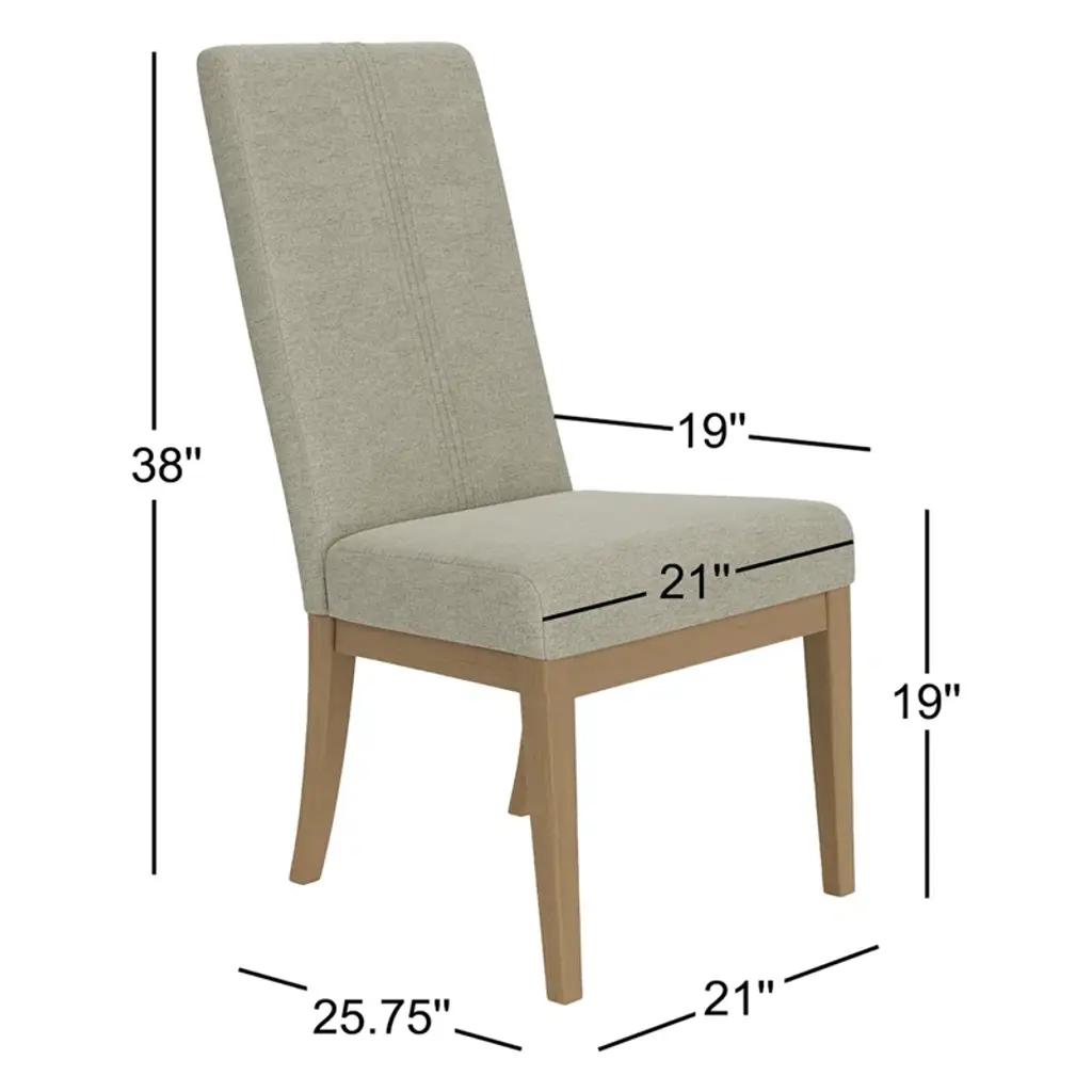 This pair of side chairs has a classic Parsons-style silhouette and is the perfect way to complete your table for two. Each is made from kiln-dried solid wood and features a supportive high back design and a pale oak finish that highlights the natural wood grain. Foam-filled cushions are wrapped in a polyester blend upholstery (spot clean as needed), and plastic glides on the feet protect your floors from scratches and scuffs.