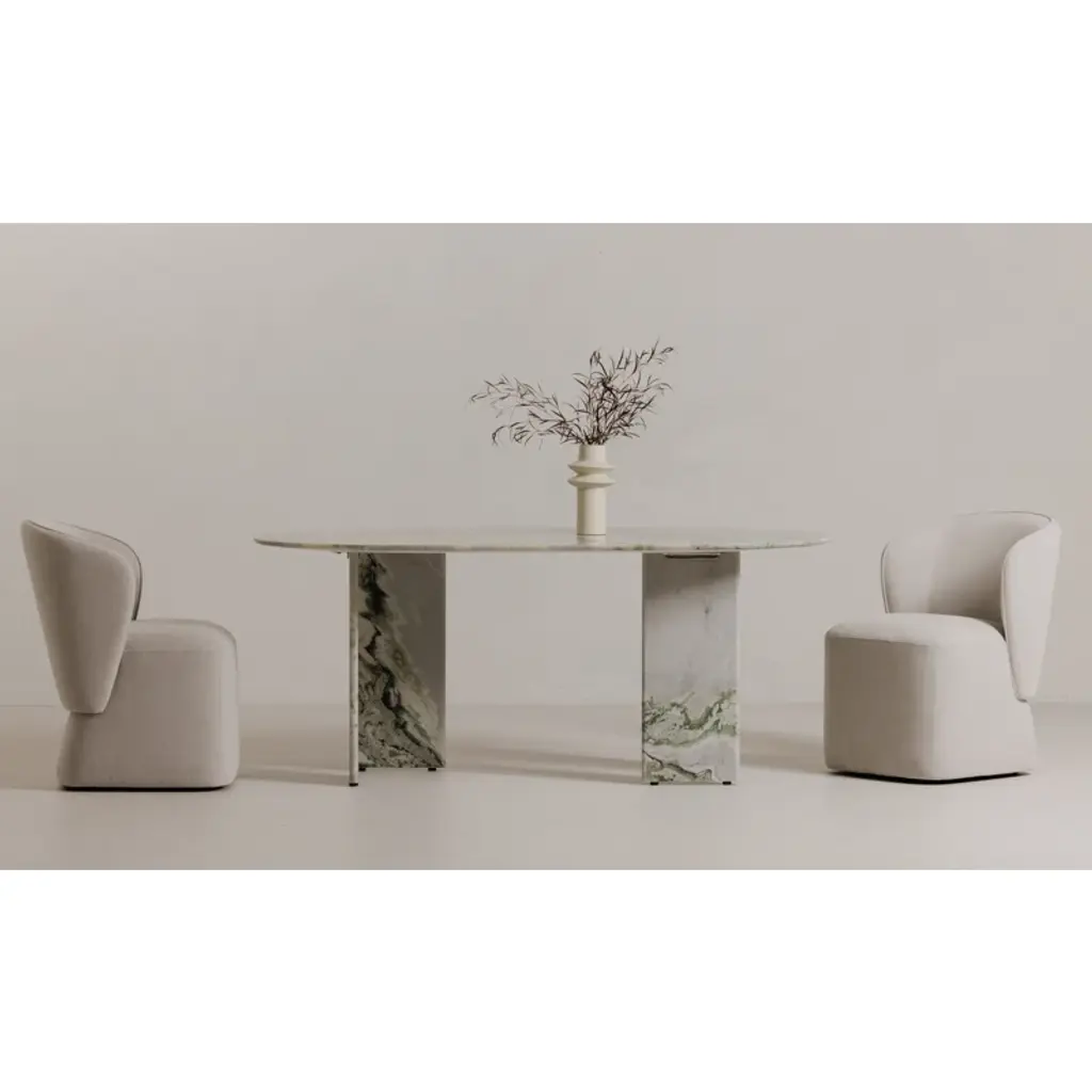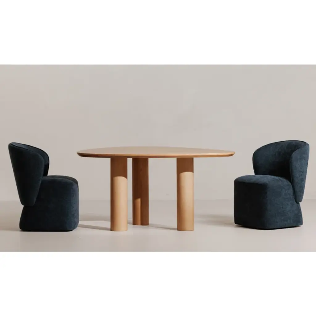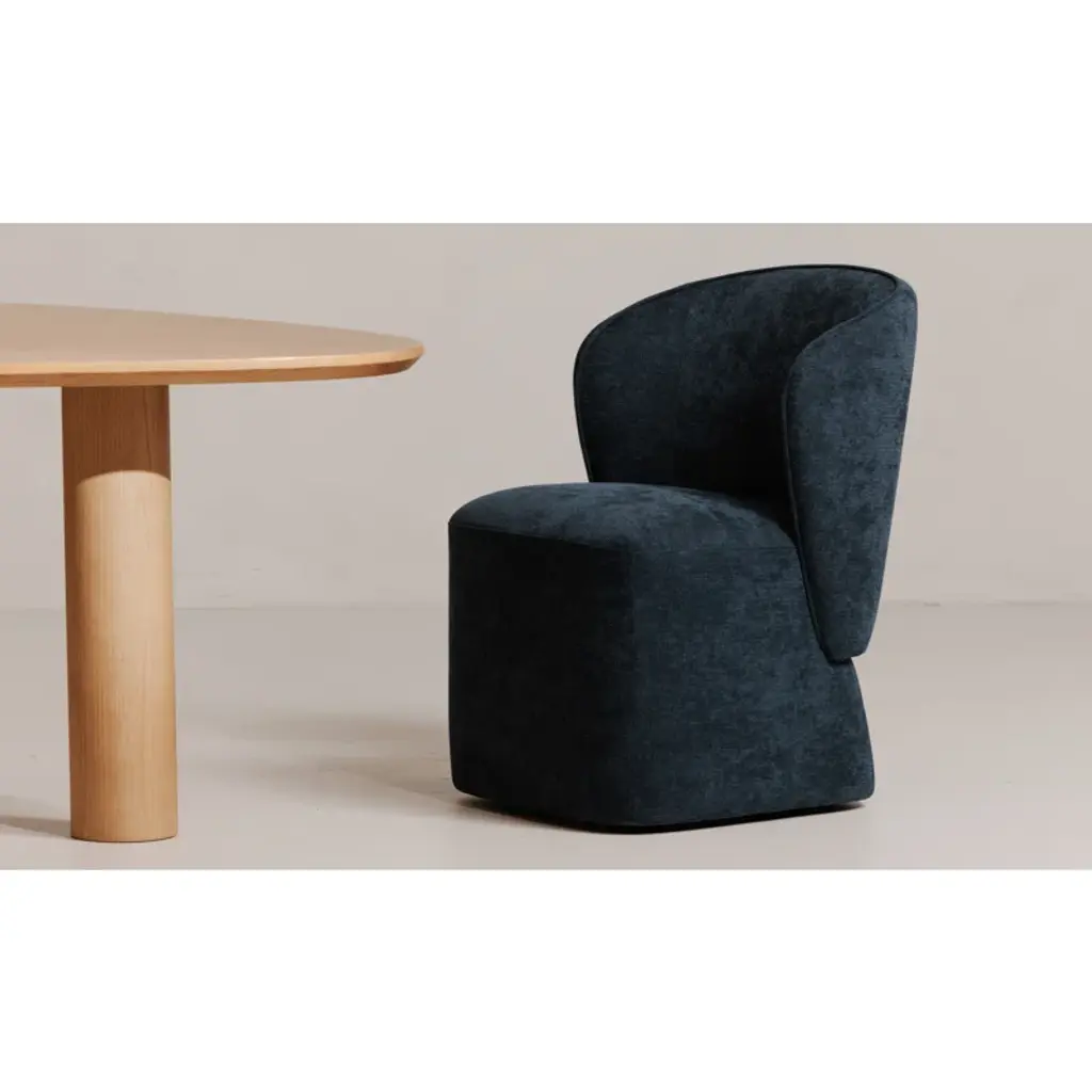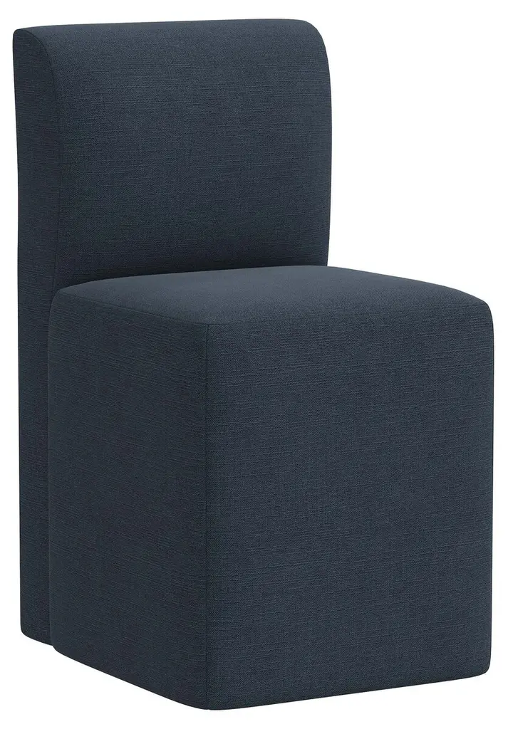 The Larson rolling dining chair is as much about comfort as it is about modern sensibility, with a generously padded seat and backrest, graceful silhouette, clean lines, curved back, rounded square seat, caster wheels and high-performance fabric upholstery that protects against stains, spills, and wear and tear.