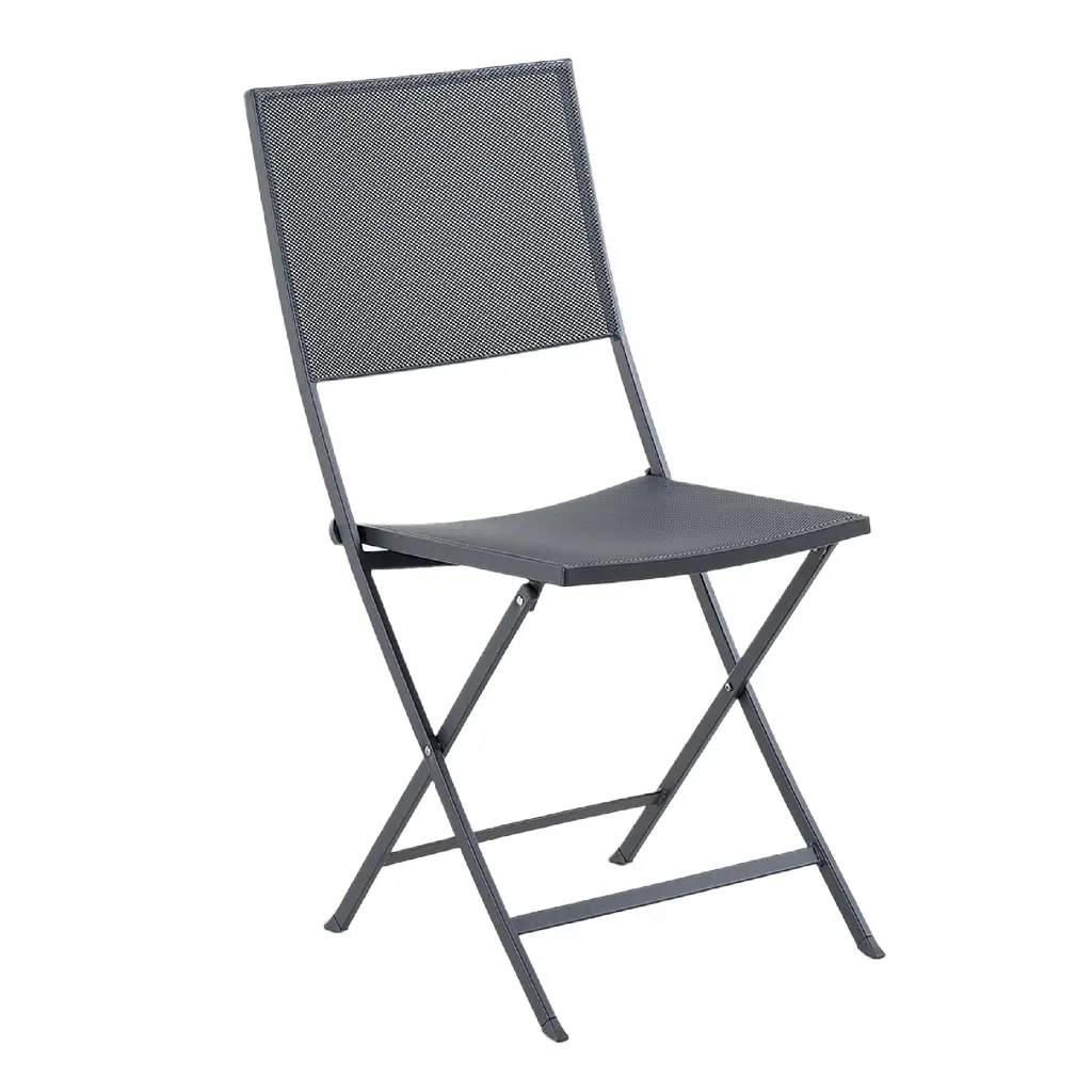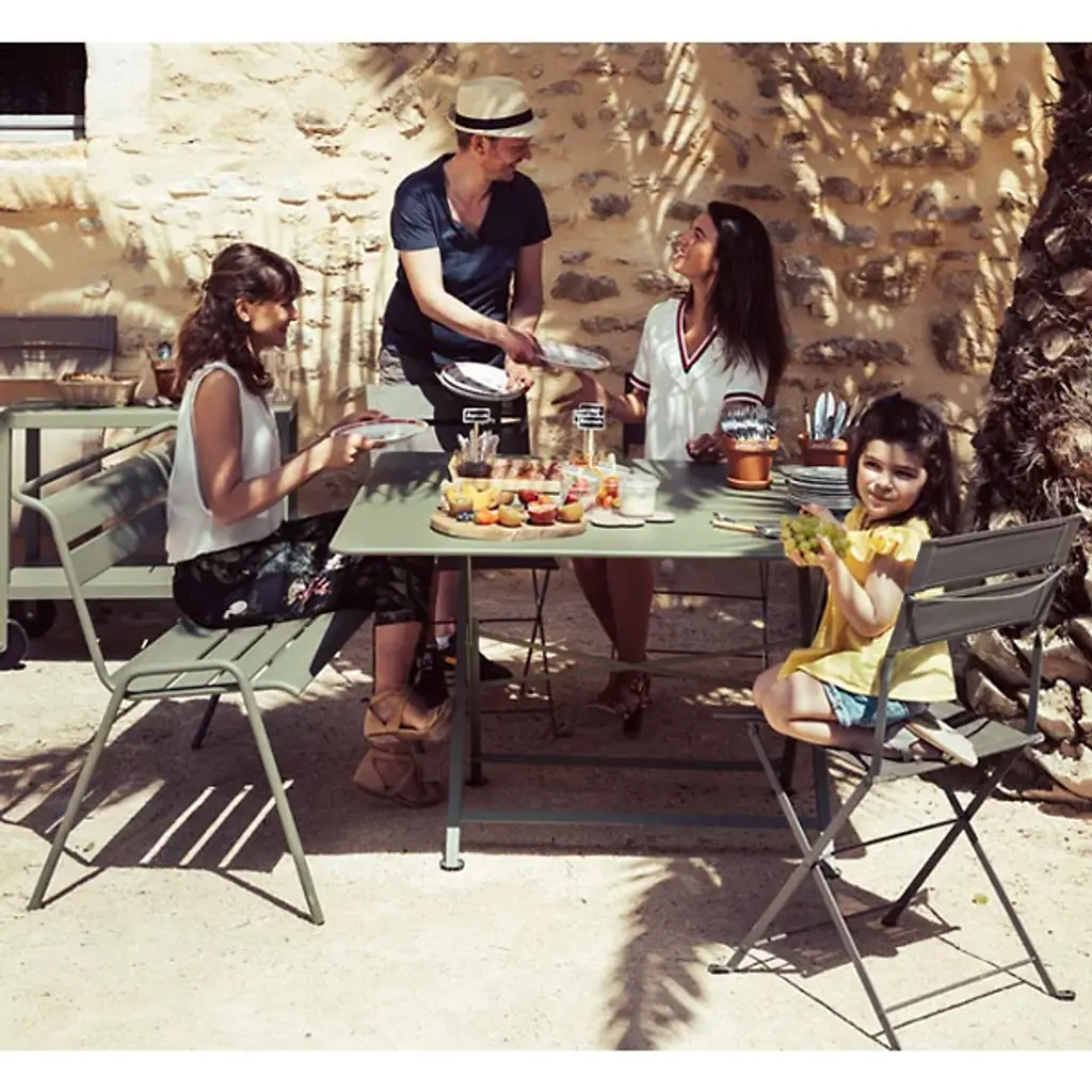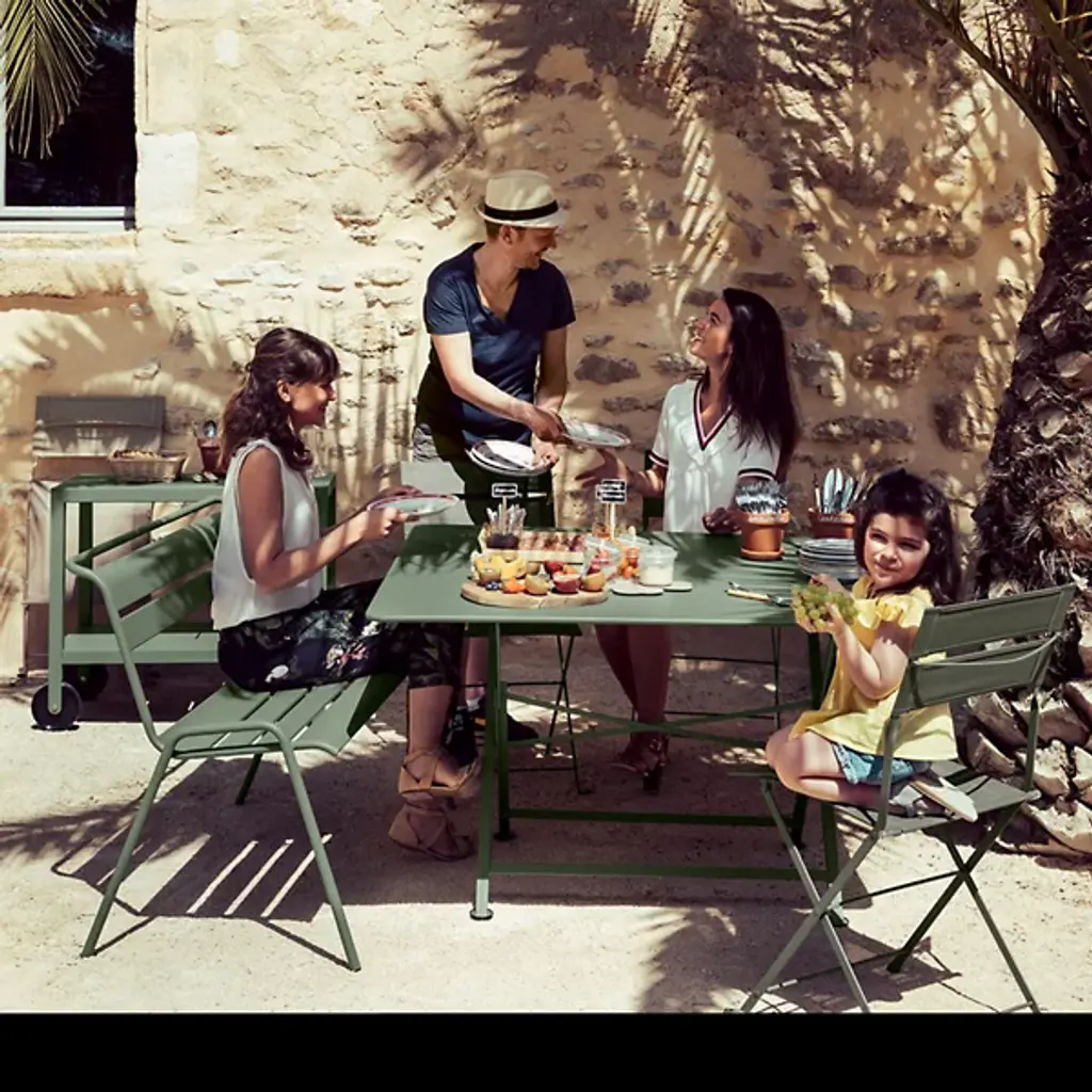 Room to maneuver. Indulgence gets a free hand in the garden with the Latitude Side Chair - Set of 2 by Fermob. Made with freedom and functionality in mind by designer Pascal Mourgue, it has a solid rolled steel frame with cross braces for added stability and protective pads on the feet. The backrest showcases a pair of tear-proof, stain resistant OTF (outdoor technical fabric) strips and the seat has a waterfall front edge for comfortable outdoor dining or lounging. Lightweight and compact, this side chair folds away for easy storage and brings its colorful charm and versatility to your balcony or terrace outdoor garden seating group.