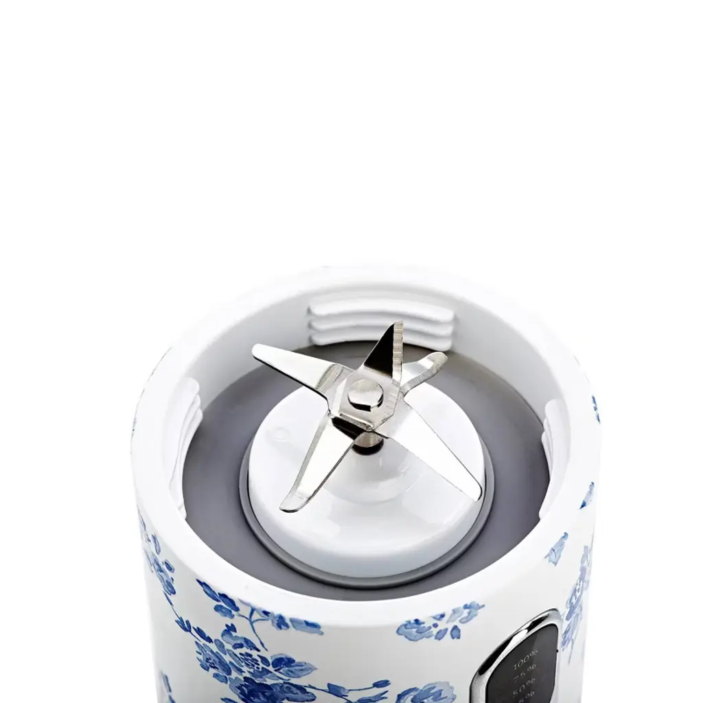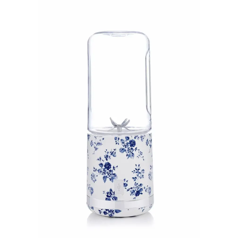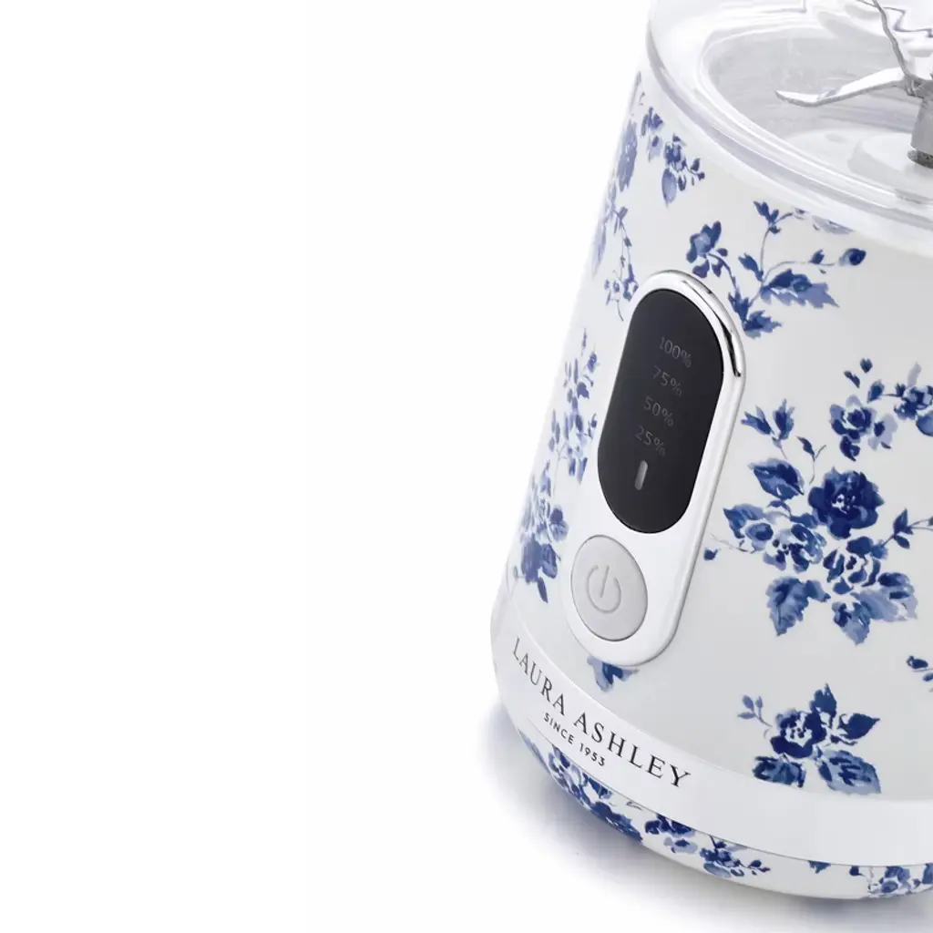 The VQ & Laura Ashley Portable Smoothie Maker is the ultimate designer USB rechargeable smoothie and juice maker. Enjoy delicious smoothies, juices, and protein shakes anytime, anywhere.This compact and stylishly designed product helps you enjoy refreshing drinks quickly. With its one-touch, push-button action, you can enjoy perfect results easily in seconds. It has a built-in rechargeable battery that charges fully in 3.5-4 hours via a USB cable (provided). The stylish LED light panel indicator lets you easily see and check the remaining power. It’s built with a powerful 25,000-rpm engine, with six robust cutter blades, able to crush through ice and any other firm foods. A large 450ml capacity juice cup is on top of the device. Meaning no residue collects around the base. When your drink is ready, remove the cup, and place the screw-fit drinking cap (provided) on the top. Simple!It is incredibly lightweight, perfect for packing into your bag or carrying around with you during the day. It also features washable plastic housing, easy to clean and use.This is the perfect combination of convenience and power and will transform how you make refreshing drinks. Whether heading to the office, off to school, working out at the gym or needing a smoothie in a hurry, this device is perfect for you. As if that isn't enough, it features a stunning individually handmade Laura Ashley China designer print finish.