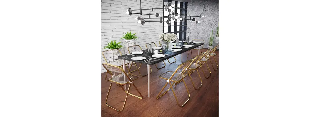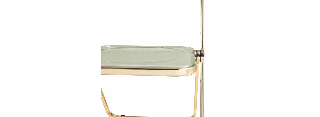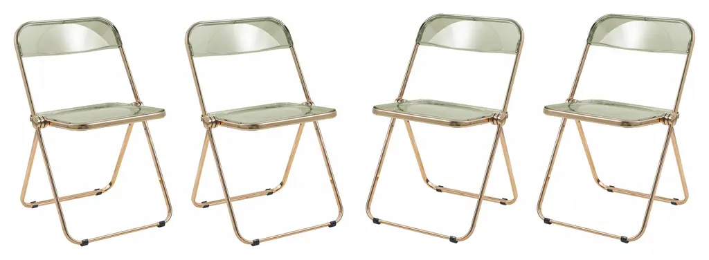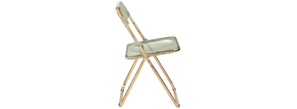 Transparent Acrylic seat and backrestSturdy Gold Chrome FrameFoldable for convenient storageFloor Cap protectors Attached to the baseDesigned for easy maintenance and daily useNo assembly requiredThe Lawrence folding chair will be your solution to your extra seating needs. This functional chair features an attractive designed seat and back, making it a staple piece for any room. This chair's durability is at a whole other level, it is very well made and sturdy as well as super comfortable It can be used in every room of the house from the living room, dining rooms, kitchens to offices, and more. The chair folds slim and can be easily tucked away when not in use.