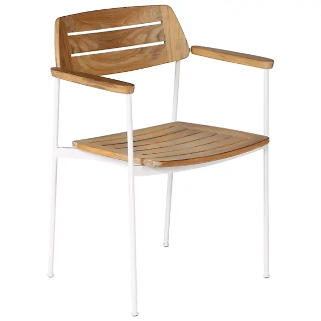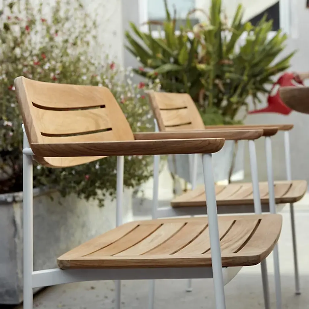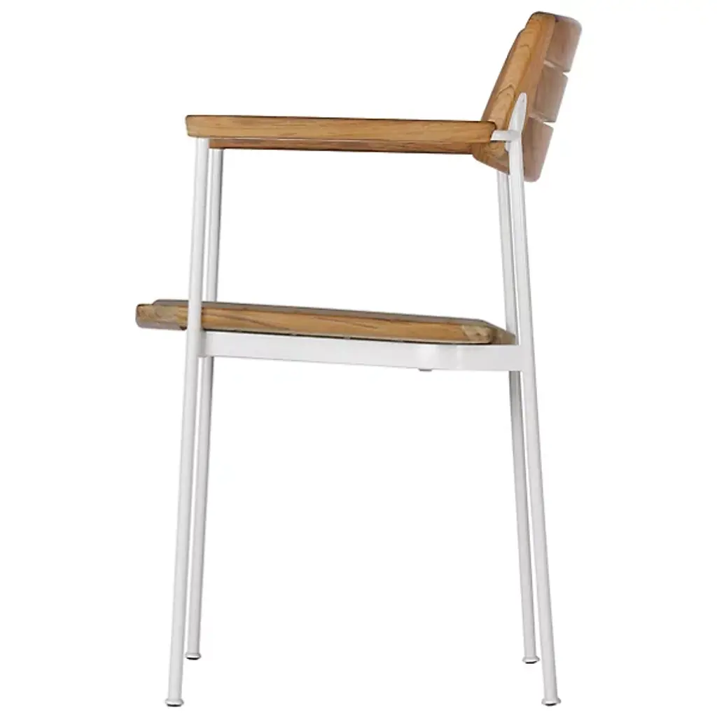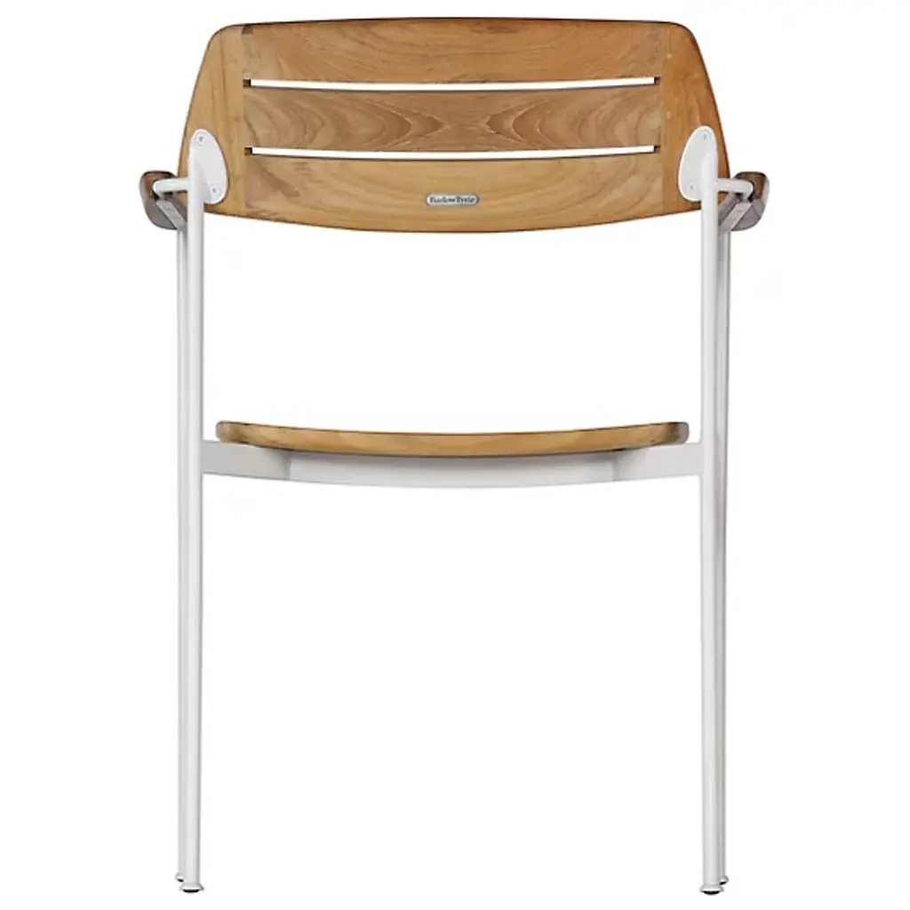 Layout Outdoor Dining Armchair from Barlow Tyrie is the perfect combination of style and functionality for your patio or deck. Crafted with powder-coated stainless steel and featuring a teak slatted top, this chair offers a sleek design that complements any outdoor space. The chair's lightweight and stackable structure make it a practical choice for any terrace, allowing for easy movement and storage. Perfect for those who appreciate contemporary outdoor furniture.
