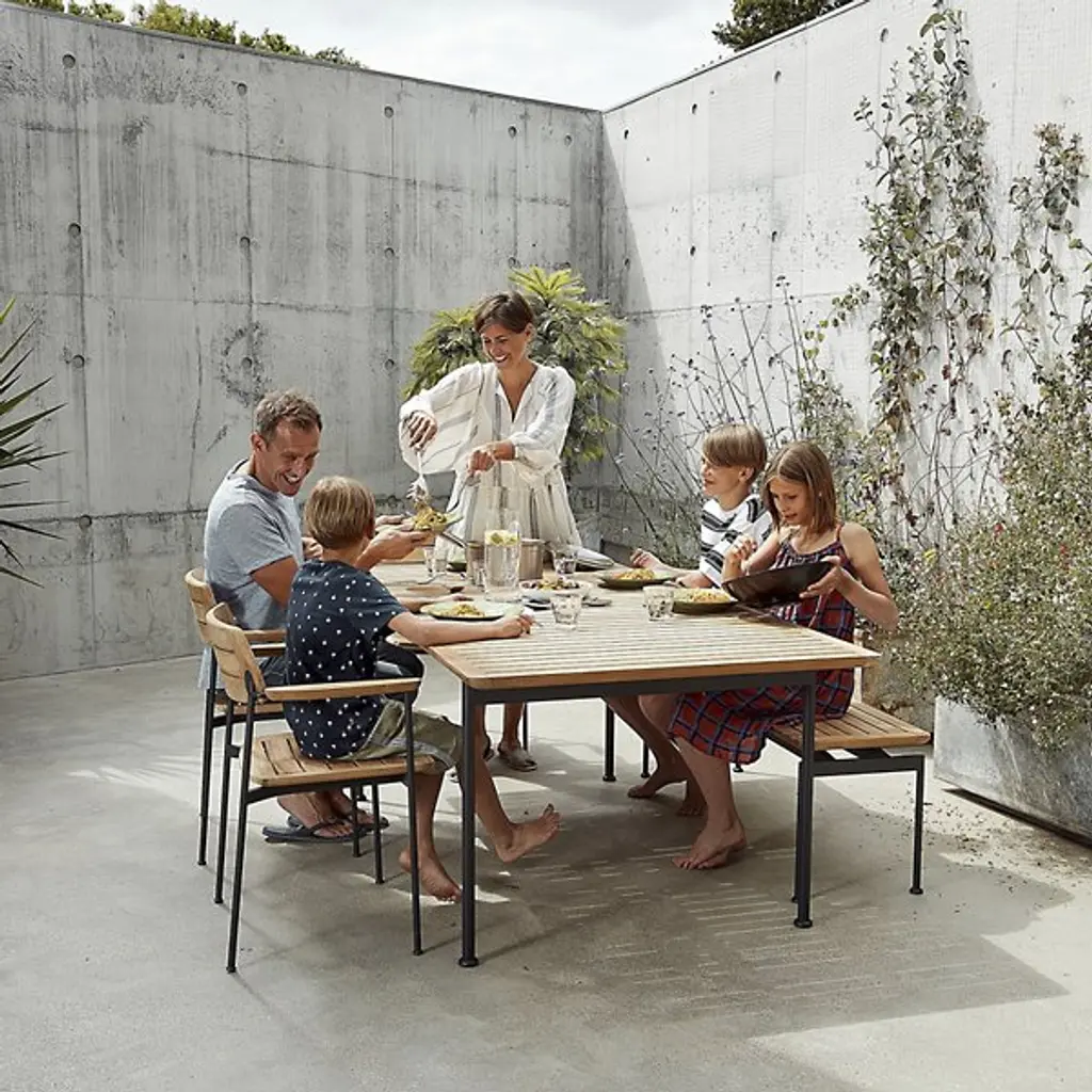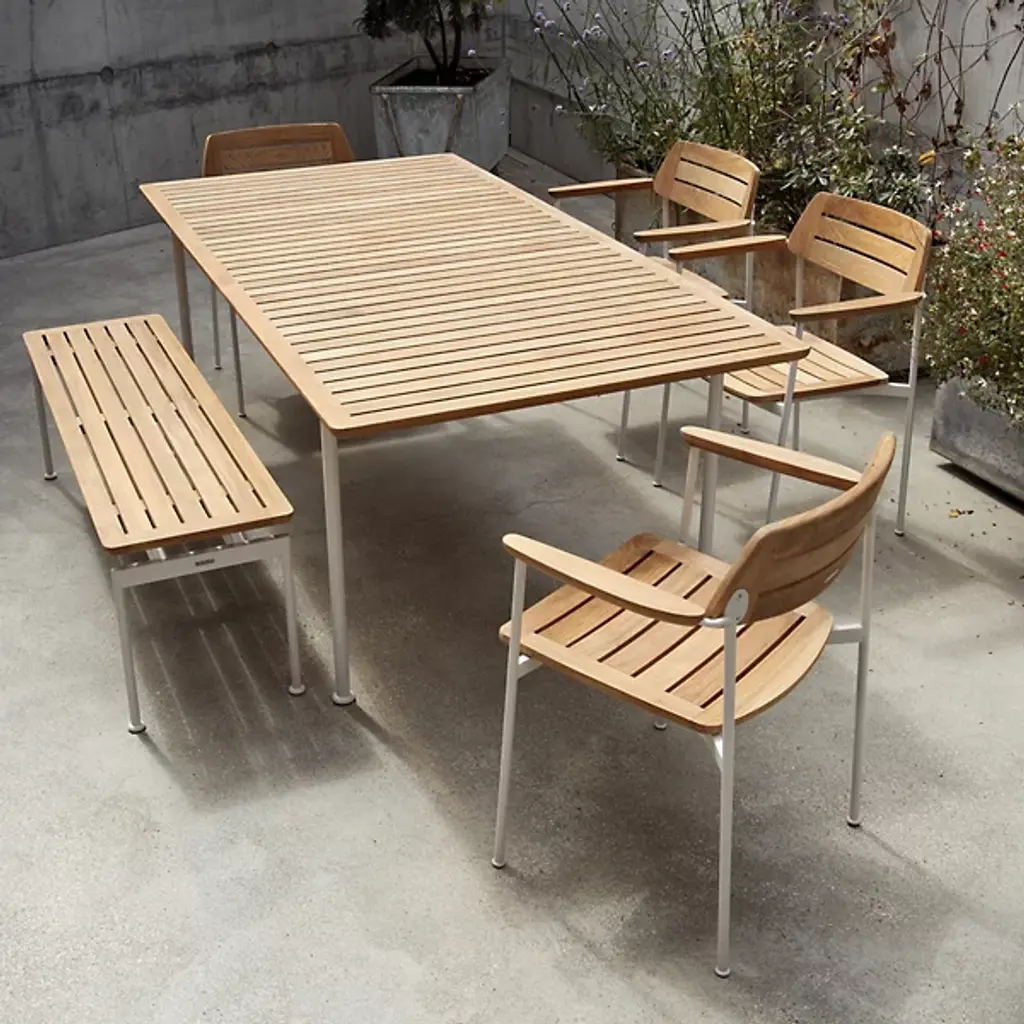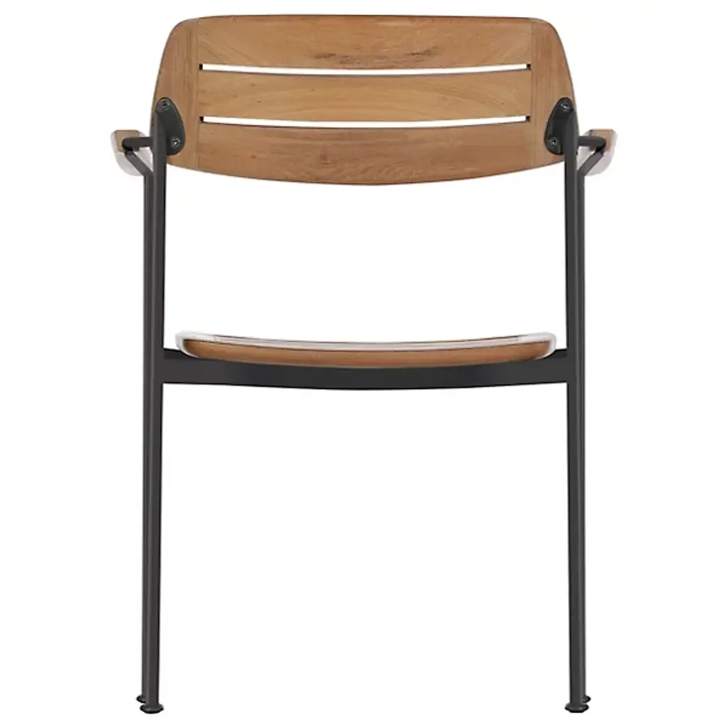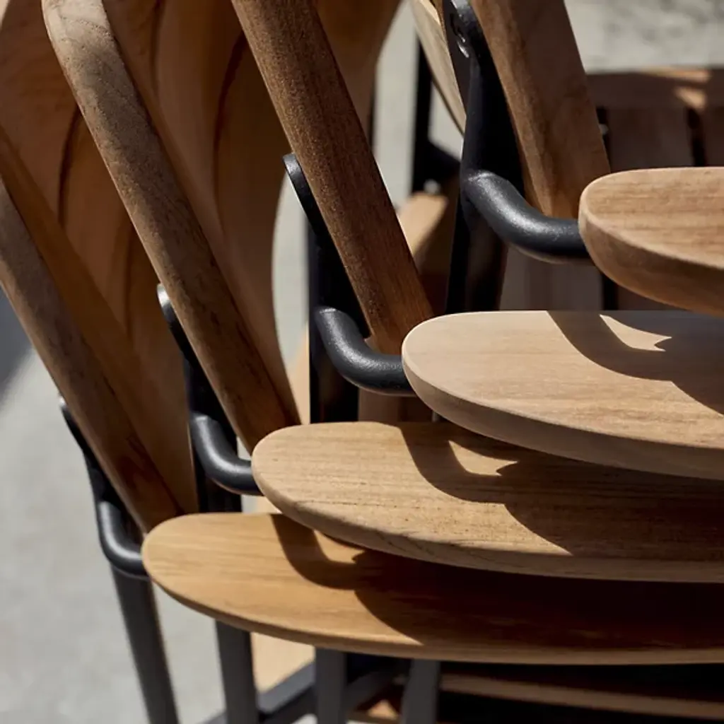 Layout Outdoor Dining Armchair from Barlow Tyrie is the perfect combination of style and functionality for your patio or deck. Crafted with powder-coated stainless steel and featuring a teak slatted top, this chair offers a sleek design that complements any outdoor space. The chair's lightweight and stackable structure make it a practical choice for any terrace, allowing for easy movement and storage. Perfect for those who appreciate contemporary outdoor furniture.