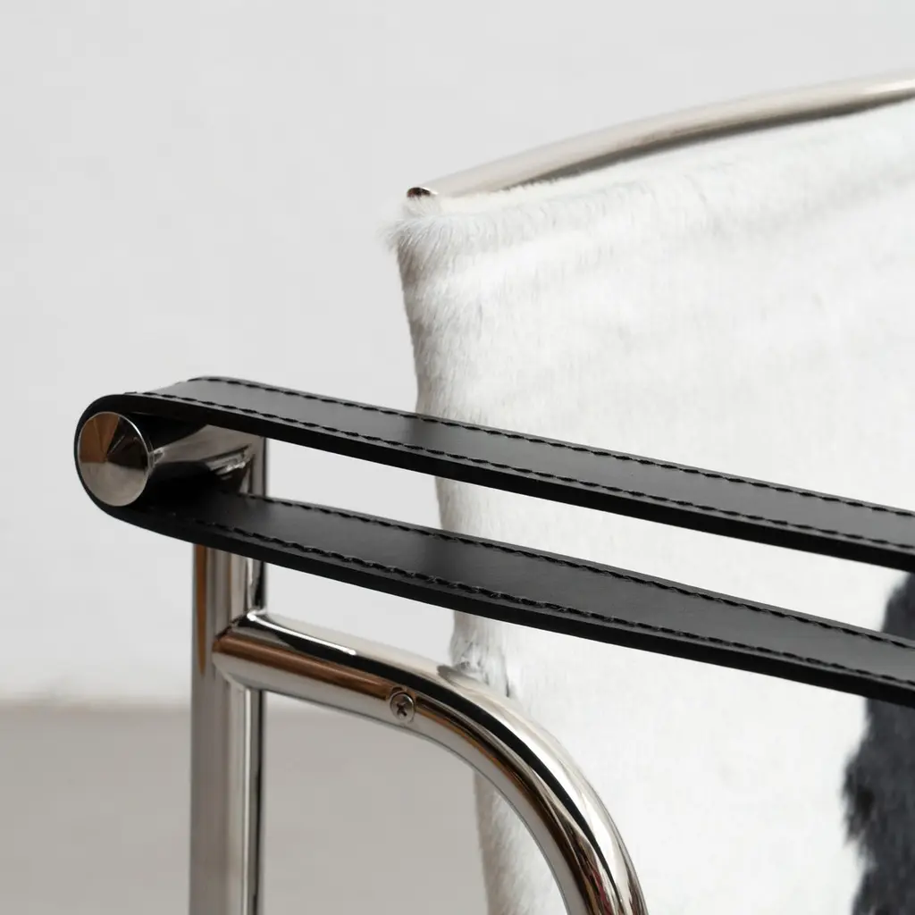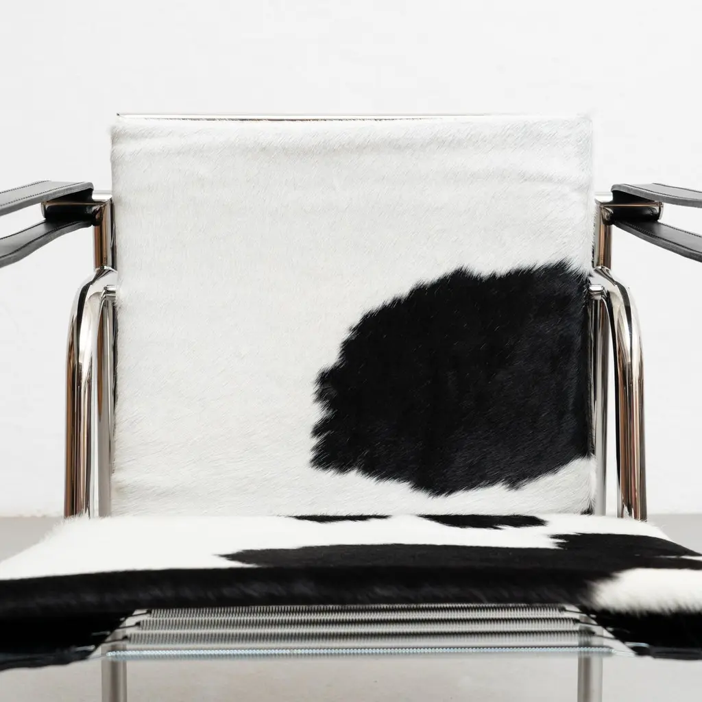 Chair designed by Le Corbusier, Pierre Jeanneret, Charlotte Perriand in 1928. Relaunched in 1965.Manufactured by Cassina in Italy.A light, compact chair designed and presented at the 1929 Salon d’Automne along with other important models, such as the LC2 and LC3 armchairs, the LC6 table and the LC4 chaise-longue. As with all of Le Corbusier’s works, the LC1 derives from an in-depth study of human posture. In this particular case, the chair is intended to be relaxing and to foster conversation. The balance between form and function is achieved through the use of the Modulor, a system based on the typical measurements of the male body and on a mathematical language informed by the proportions of universal harmony. Its perfect compositional simplicity, suited to any context, is available in three versions. In addition to the 1929 model, there is the 1928 Villa Church option, and the one exhibited in 1930 at the Union des Artistes Modernes. The chair’s LC-Y leather and trivalent chromium plating hold Greenguard Environmental Institute certification.Important information regarding images of products:Please note that some of the images show other colors and variations of the model, these images are only to present interior design proposals. The item that is selling is on the first image. Important information regarding color(s) of products:Actual colors may vary. This is due to the fact that every computer monitor, laptop, tablet and phone screen has a different capability to display colors and that everyone sees these colors differently. We try to edit our photos to show all of our products as life-like as possible, but please understand the actual color may vary slightly from your monitorAbout the designer:In 1922, Le Corbusier began working in the new rue de Sèvres, Paris, atelier with his cousin Pierre Jeanneret with whom he shared research projects and design criteria in a profound and life-long professional relationship.In October 1927, the pair decided to draw on the contribution of a young architect who had already begun to establish a reputation on the architectural scene of the time: Charlotte Perriand. Their collaboration lasted through to 1937 and was extremely fruitful, especially in the field of furniture design. The partnership was highly significant, both in terms of the cultural weight of their achievements and their professional successes.It was together with Charlotte Perriand that the pair tackled the innovative project for “l’équipement d'intérieur de l’habitation”. The resulting designs were of great intellectual value and considerable commercial success. About the manufacturer:In a continuing dialogue between past, present, and future, Cassina has created the I Maestri collection, revisiting furnishing designs by the twentieth century’s best-known architects, including Le Corbusier, Pierre Jeanneret, Charlotte Perriand, Charles Rennie Mackintosh, Gerrit Thomas Rietveld, Franco Albini, Frank Lloyd Wright and Marco Zanuso. While the designs and functional concepts have been precisely preserved, the models have been manufactured using evolved technology. This is also the company that has manufactured iconic pieces of contemporary design from the 50’s to the present day, ideated by some of the most important international designers. Today Cassina continues to look to the future of design with audacious, passionate curiosity and an open, holistic approach. It affirms its exclusive ability to furnish a home’s living and dining spaces completely and iconically with The Cassina Perspective: a concept, a philosophy, an informed, futuristic thought. A detailed, expansive horizon of combinations; when placed together, the products have an innovative soul and the modern icons create authentic, welcoming, personal atmospheres involved in a conversation dominated by a code of design excellence, formal sensitive awareness, solidity and cultural authority.