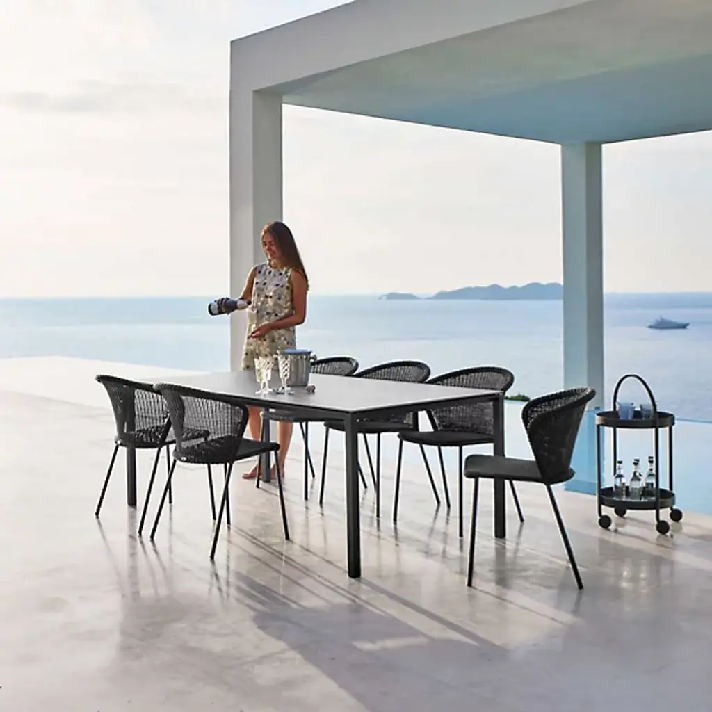 Relax indoors and out with the modern Lean Chair by Cane-Line. Stylish as well as functional, Lean is crafted with Cane-line Weave and is stackable, making it easy to move the chairs into any location they are needed. Designed by Welling and Ludvik, this contemporary piece can withstand outdoor weather and is ideal to in numerous locations ranging from your outdoor patio to dining room table.