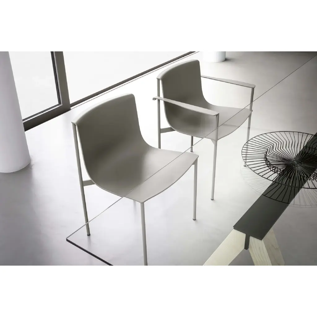 The Leather Upholstered Dining Chair by Lema embodies Lema's discreet style and the bold approach of Piero Lissoni. The Ombra collection is characterized by a metal structure, light to the eye but solid in function, which supports the shell capable of accommodating chairs and backrests. Formed from a rigid polypropylene sheet, minimal in thickness, the shell is also available with leather upholstery with very light padding. The stool, a novelty of the Lema 2022 collection, is part of the Ombra project, a family of furnishing accessories that arises from Lema's profound research on shapes and materials, which has allowed the development of a seat capable of combining great stylistic refinement and a balanced value for money. Ombra is protected by a Community Design registration.