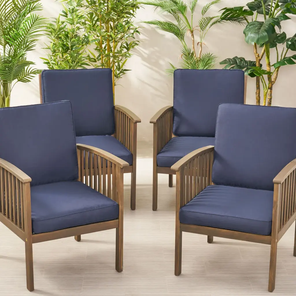 Lee Outdoor Water Resistant Fabric Club Chair Cushions, Set Of 4, Navy Blue