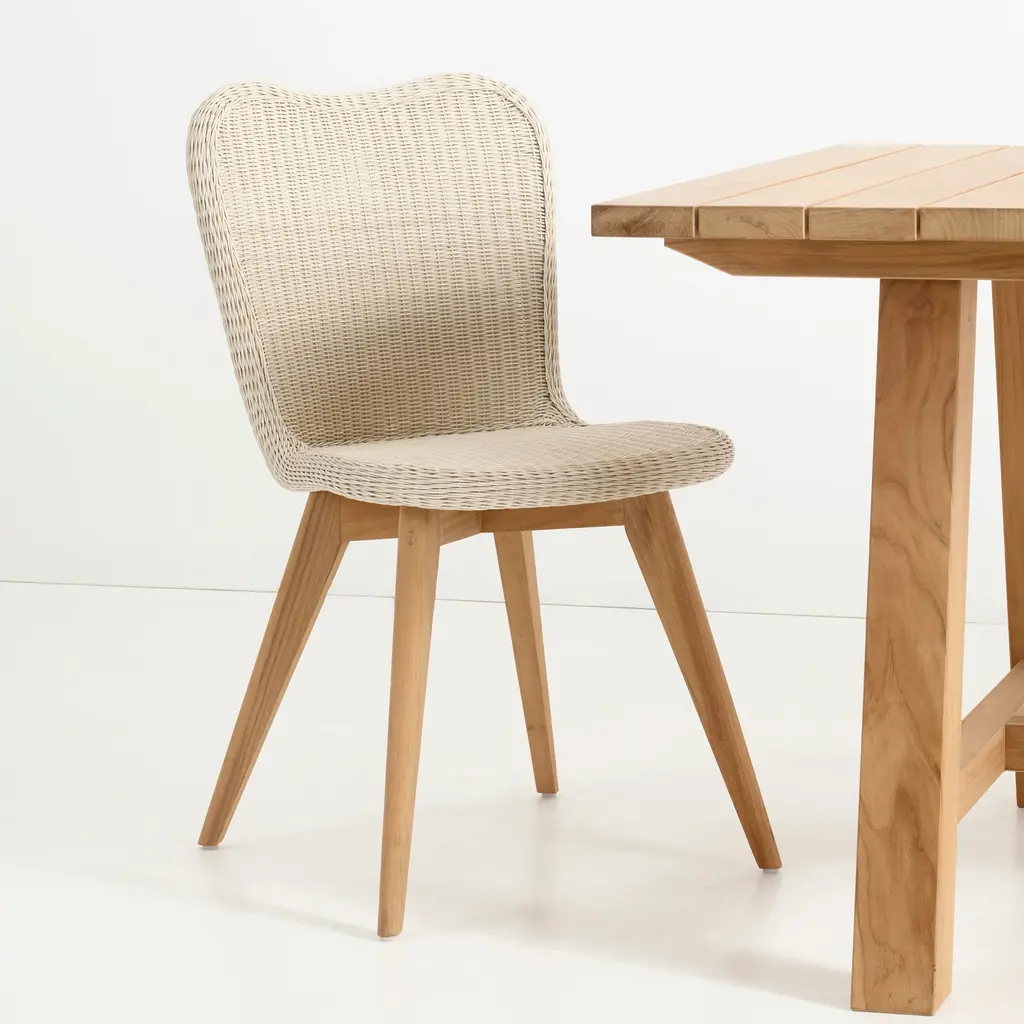 Elevating spaces with its charming curves and woven texture, the Lena Dining Chair from Vincent Sheppard will get your outdoor spaces garden party-ready. Featuring a solid teak base that exudes timeless sophistication, this dining chair is crafted for both style and comfort, its polyethylene wicker seat offering the perfect blend of durability and modern aesthetic. With a stylish blend of natural and contemporary elements, the Lena Outdoor Dining Chair seamlessly complements any setting. Highlights