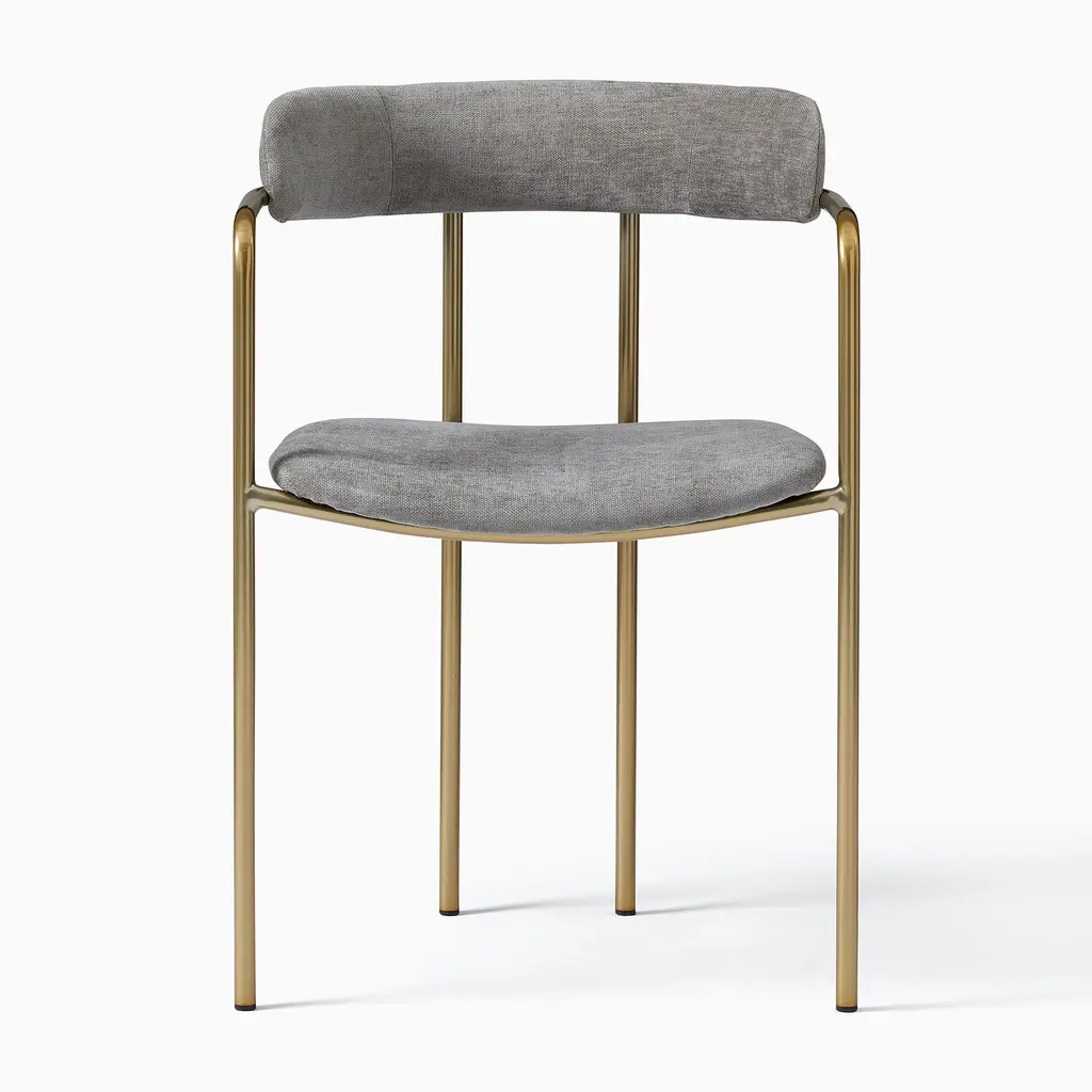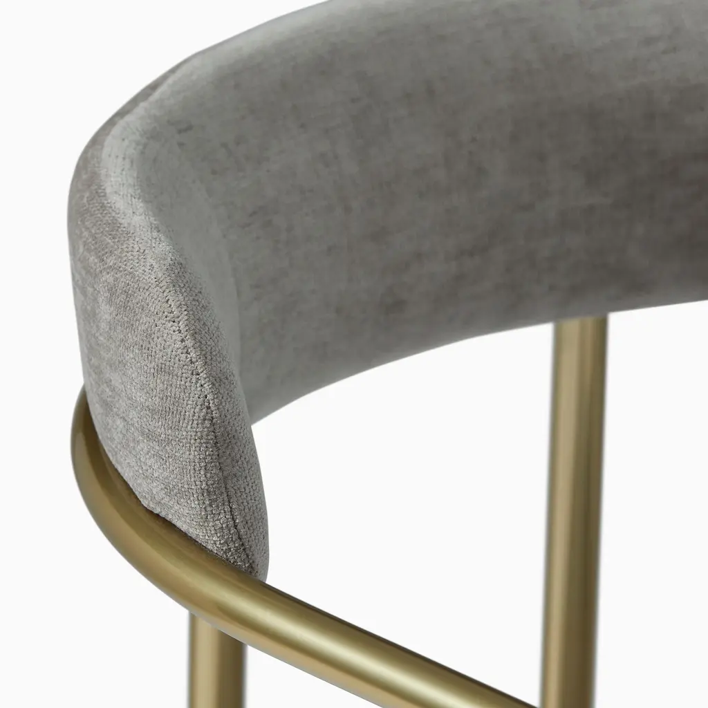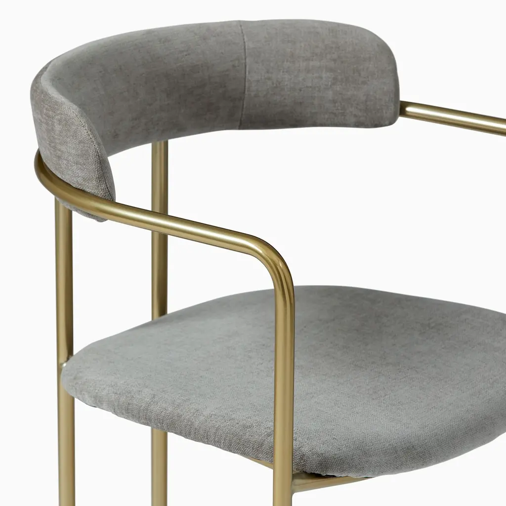 Defined by the elegant curve of its rounded back. Slim steel frame for an airy feel and art deco sensibility. Comes in your choice of fabrics and finishes. Contract Grade, so you know it's built to last.