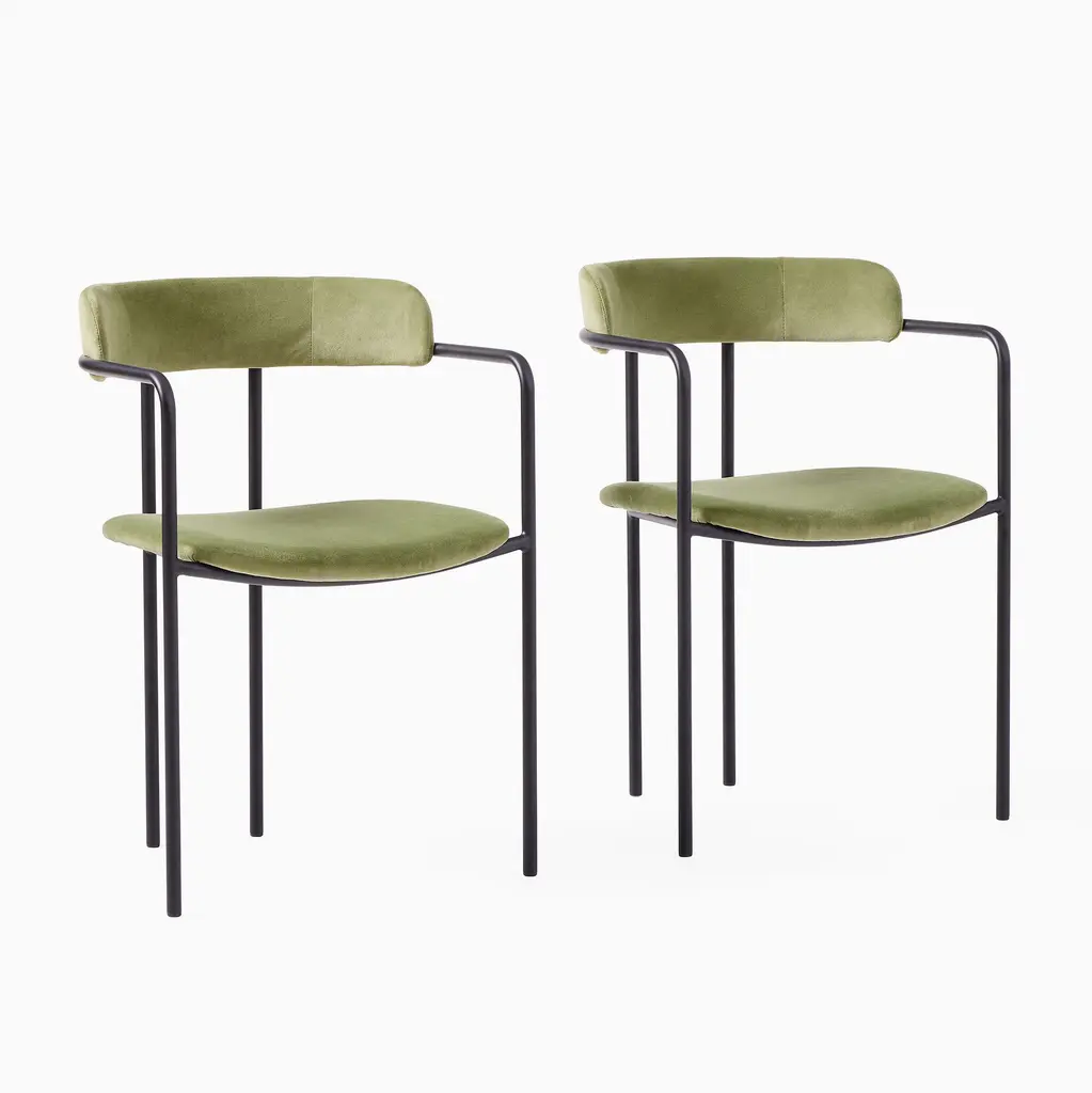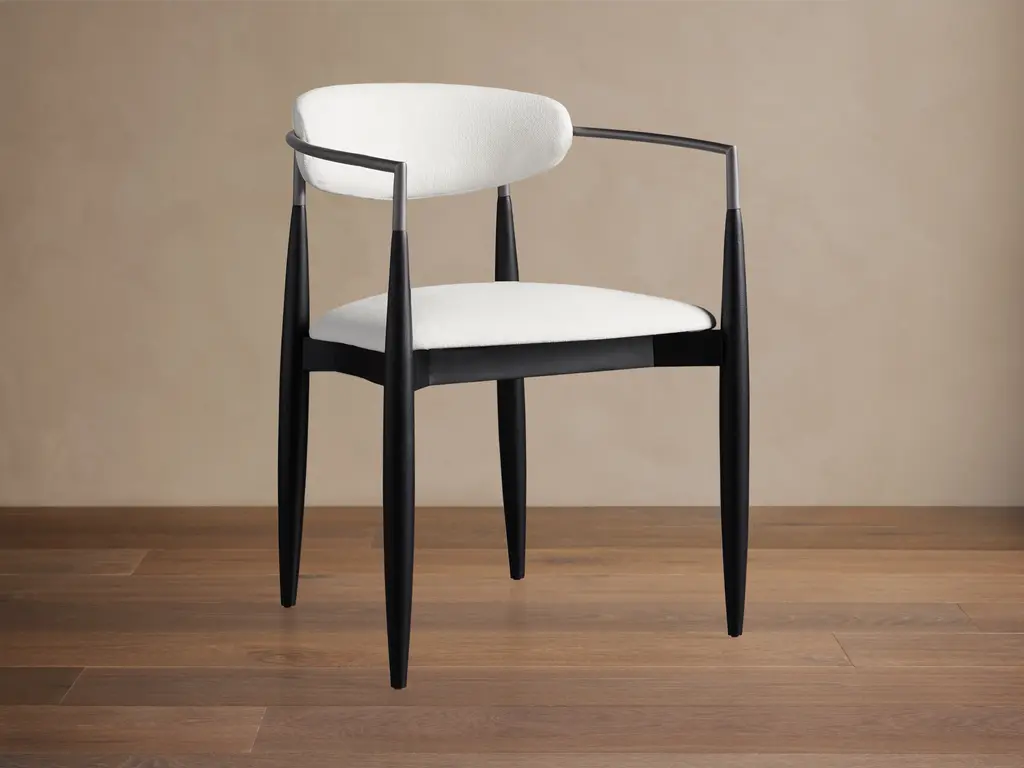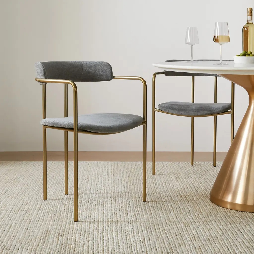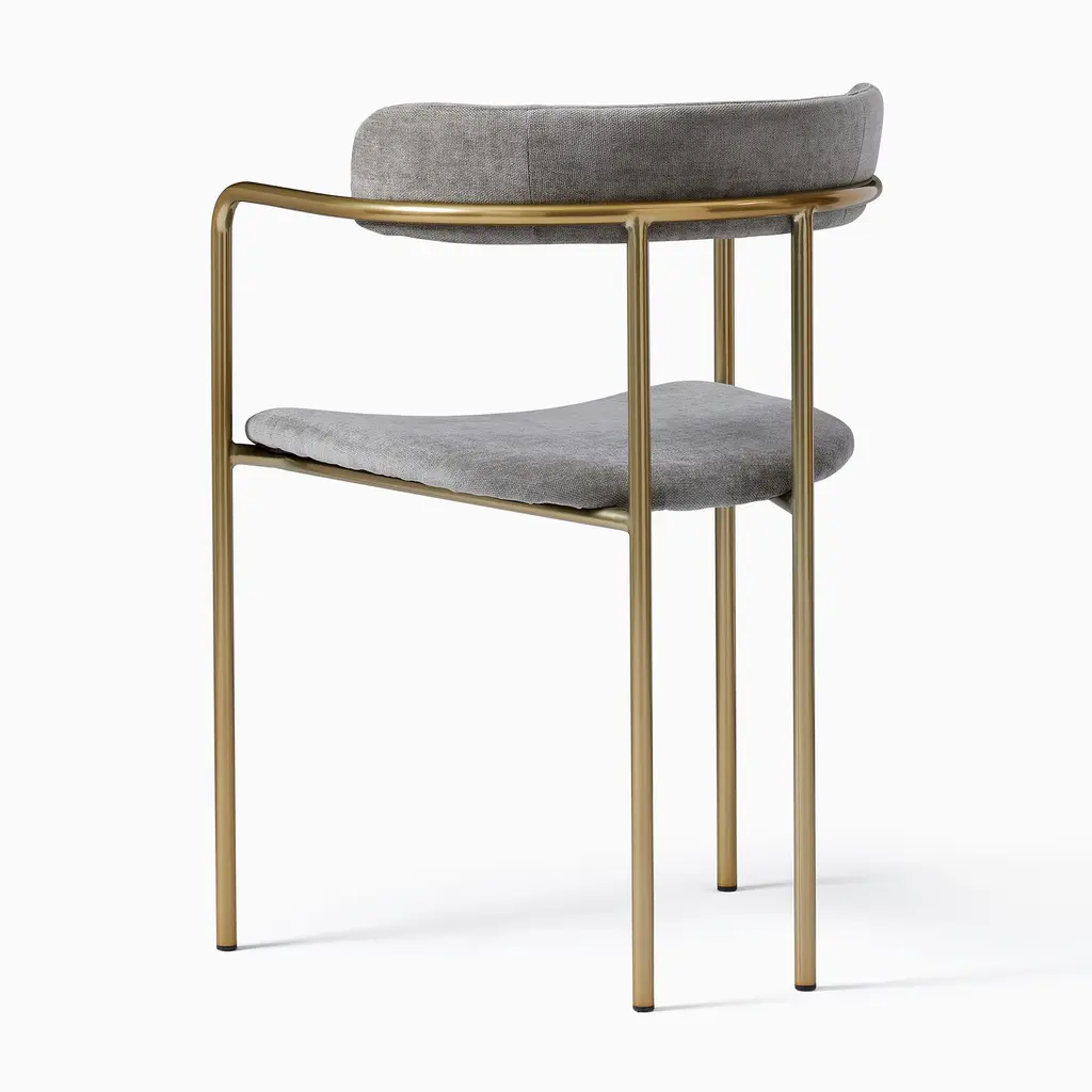 Defined by the elegant curve of its rounded back. Slim steel frame for an airy feel and art deco sensibility. Comes in your choice of fabrics and finishes. Contract Grade, so you know it's built to last.