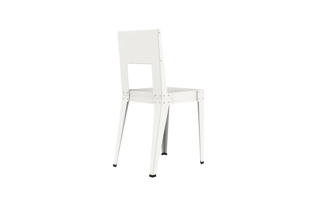 The Aluminium collection by Piet Hein Eek, designed in the nineties, is made of folden aluminimum plate. Piece de resistance is the Aluminimum chair which was used in the interior design of the Dutch Design Cafe at the Museum of Modern Art in New York. Shelves Cabinets, a trolley and the chairs and tables of this collection are put together with bolds, sediments and nails. An unknown construction technique in the project market. Through the recent cooperation with Lensvelt the Aluminimum collection can be produced in large numbers. To improve the comfort Eek designed a variant to the ‘straight’ aluminium chair.With this variant the seating and back are a little hollow.