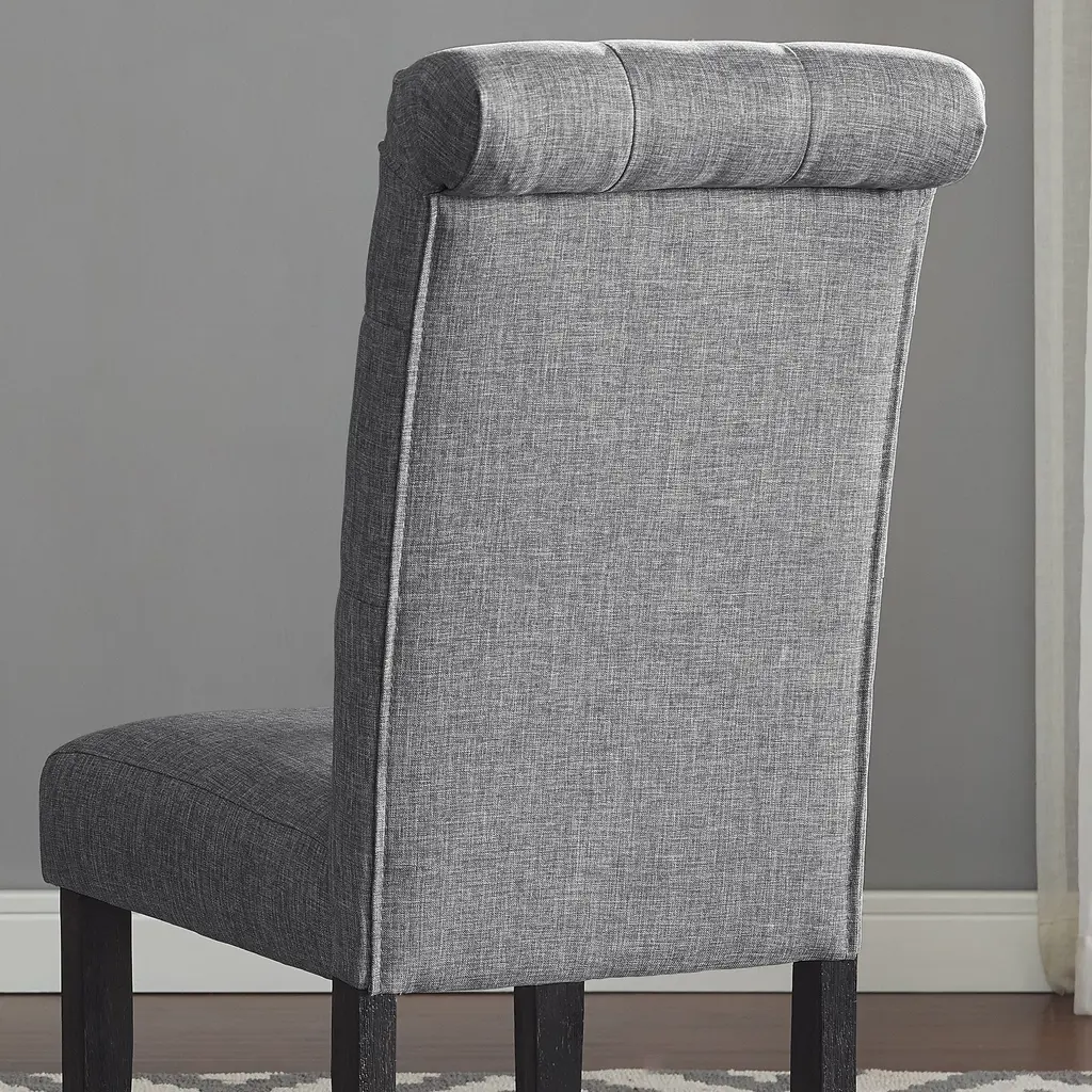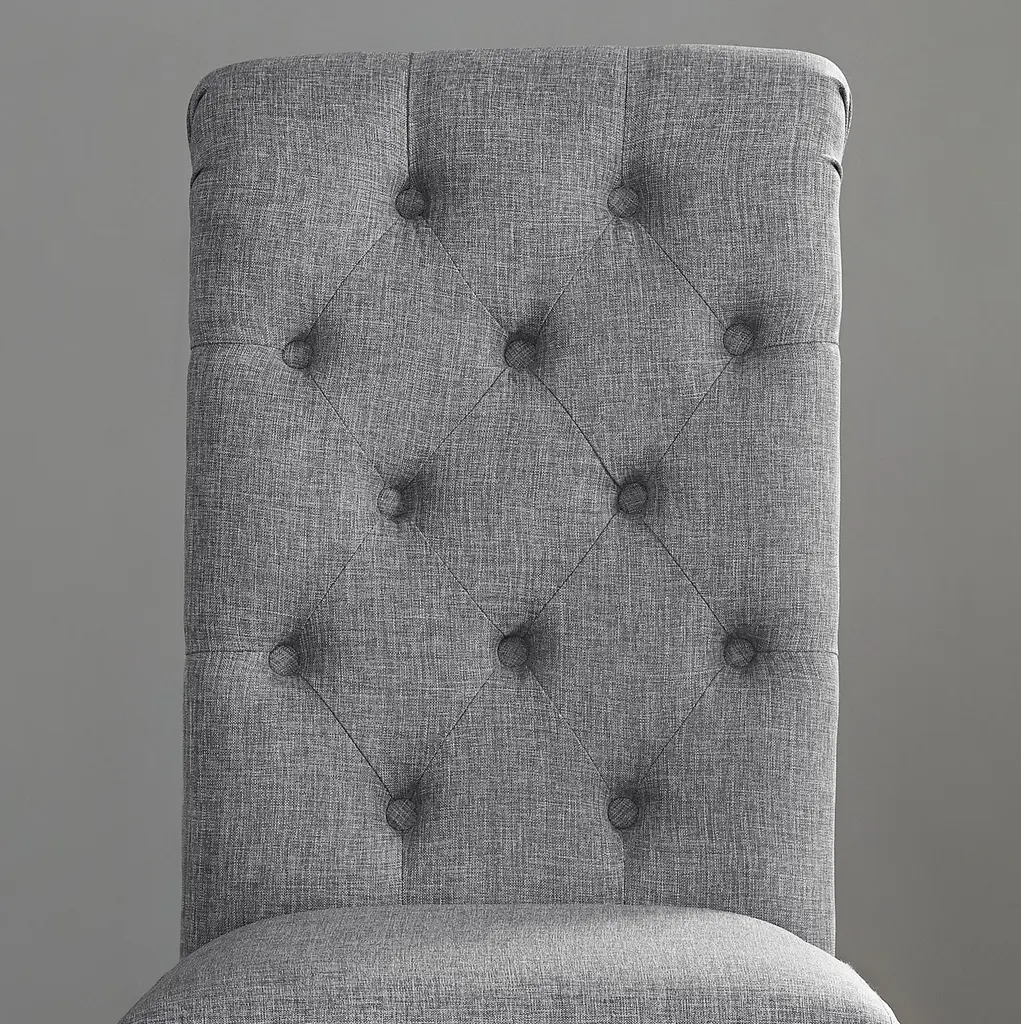 Button tufted for a tailored look, the Leviton Solid Wood Tufted Asons Dining Chair upgrades your kitchen or dining room. This set includes two Ason's style dining chairs.; The wood frames are armless design and finished in oak for a contrast to the polyester fabric upholstery.; The seats and backs are padded and button tufted. The durable wooden legs are finished in light color to match the style.; These high-back chairs are slightly and elegantly curved, expertly finished with velvety soft upholstery.; Dimension: 18" W x 21" D x 39.2" H; Seat height 19"; Apron height 6.5"; Apron to floor 12.5";