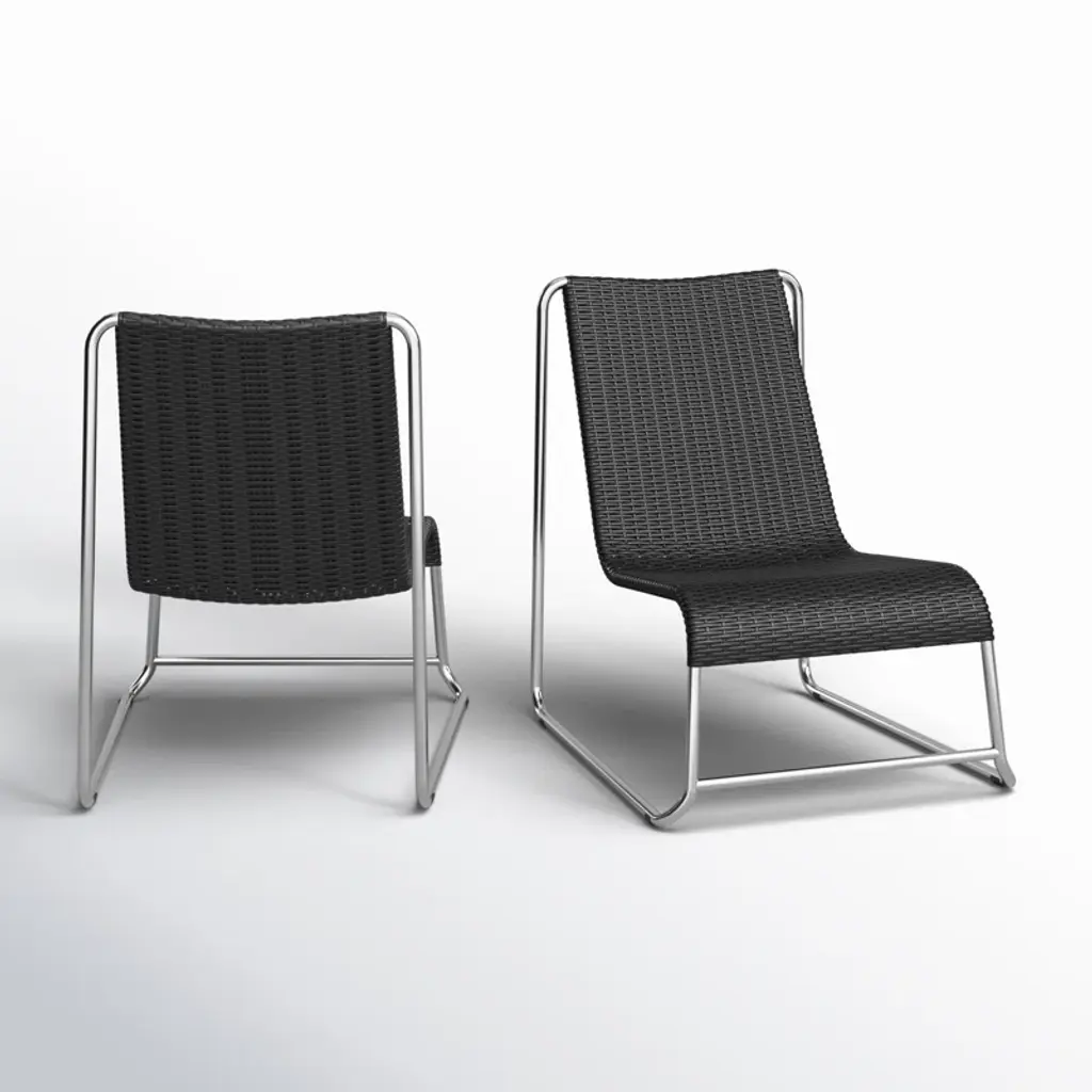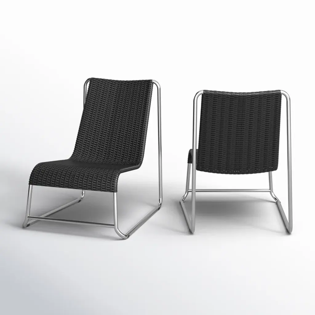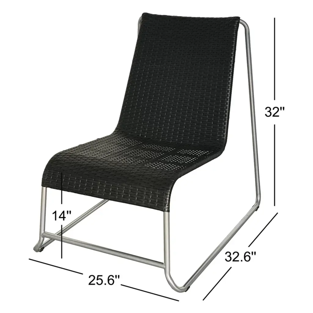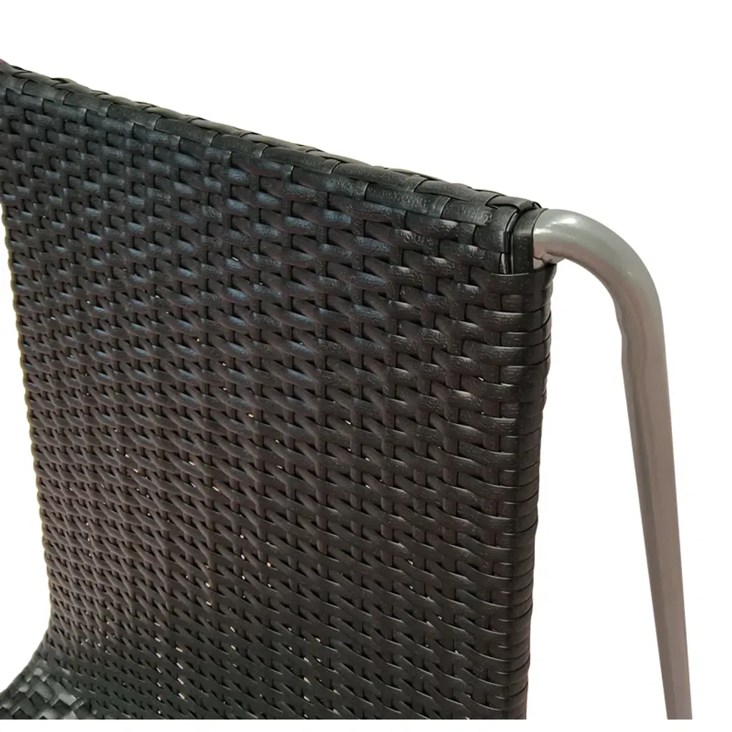 Designed with elegant lines with black all-weather wicker, this 2 pack wicker stack chair can be arranged to suit various settings. Adding this patio chair to your living space, ensures the creation of a new favorite spot for relaxation after a challenging day. It has durable powder-coated steel frames for sturdy seating. With its stacking capabilities, this wicker chair offers both convenience and a relaxing ambiance. Best of all, the chairs come fully assembled to enjoy immaditely.
