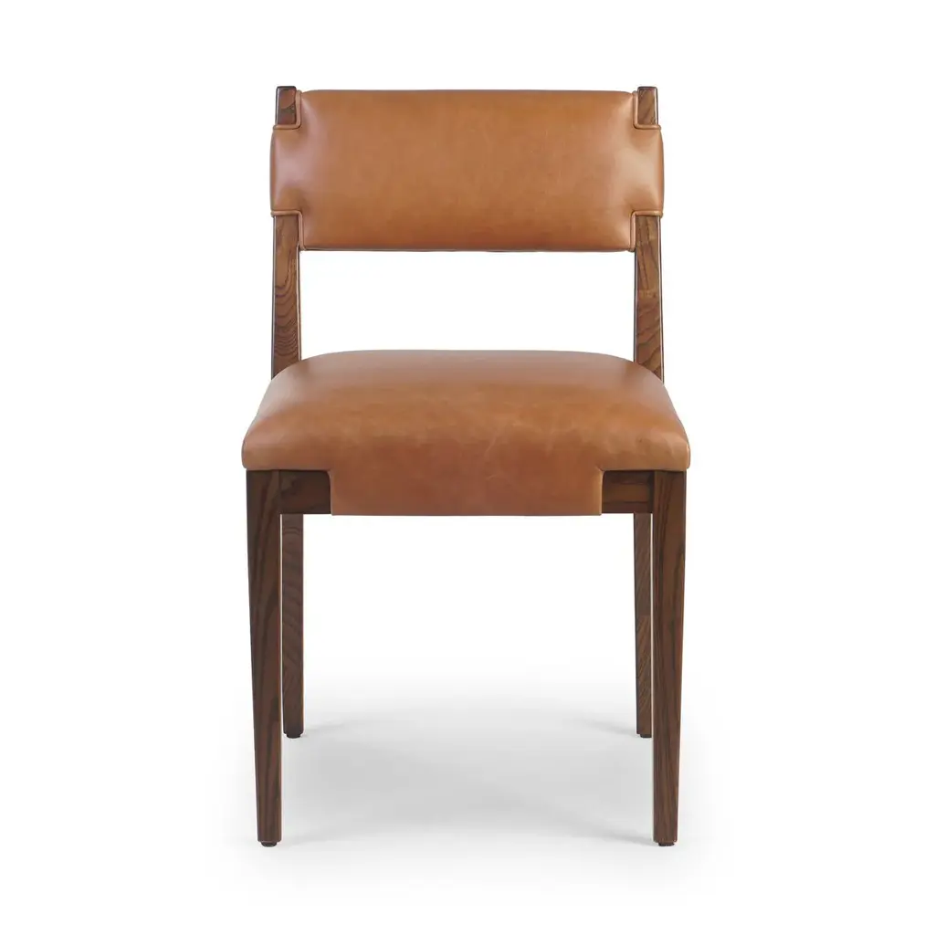 Liam Modern Classic Brown Leather Wood Dining Side Chair