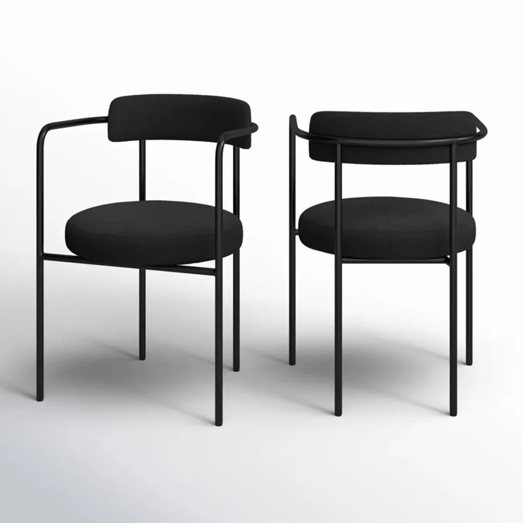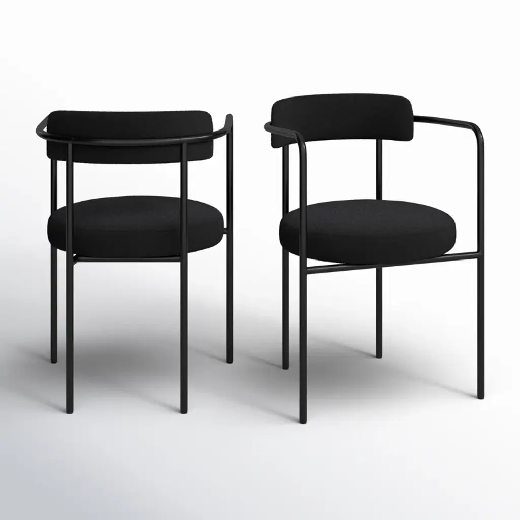 Modern meets minimal with this set of two metal-framed armchairs. Upholstered in a soft boucle fabric made of polyester blend + filled with foam, these chairs are perfect for residential use. Sleek, simple, and spot-clean friendly – these armchairs effortlessly elevate any space with style and comfort.