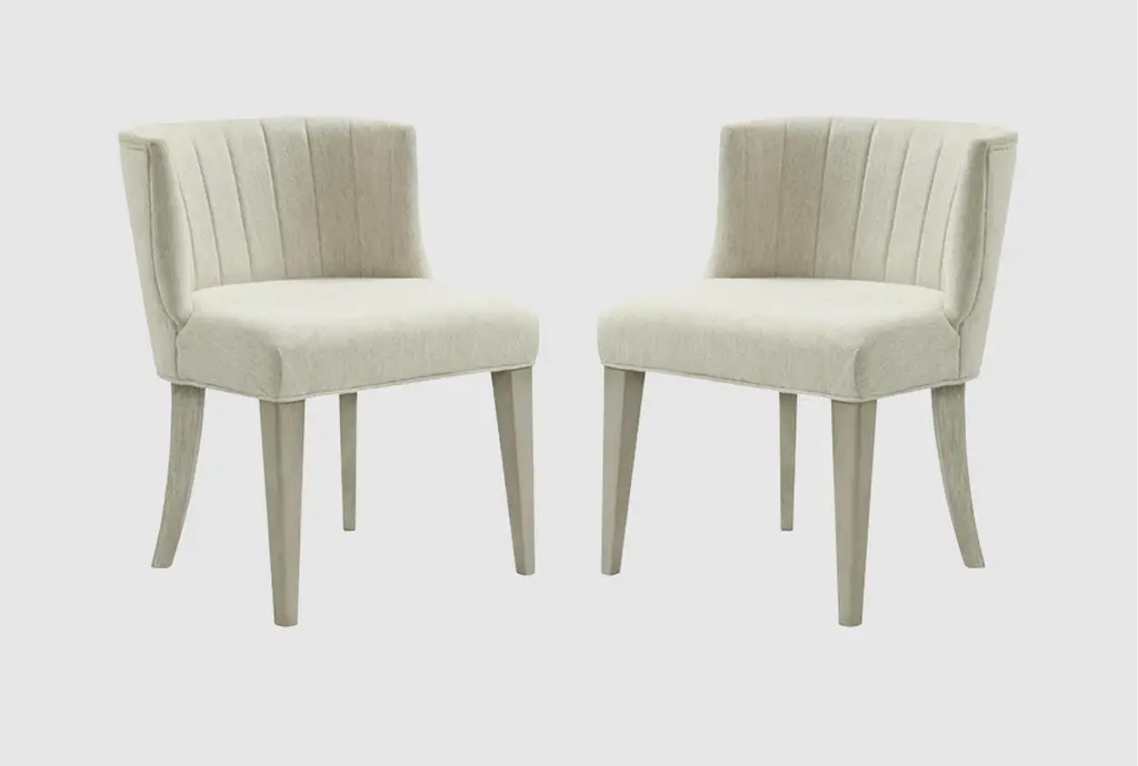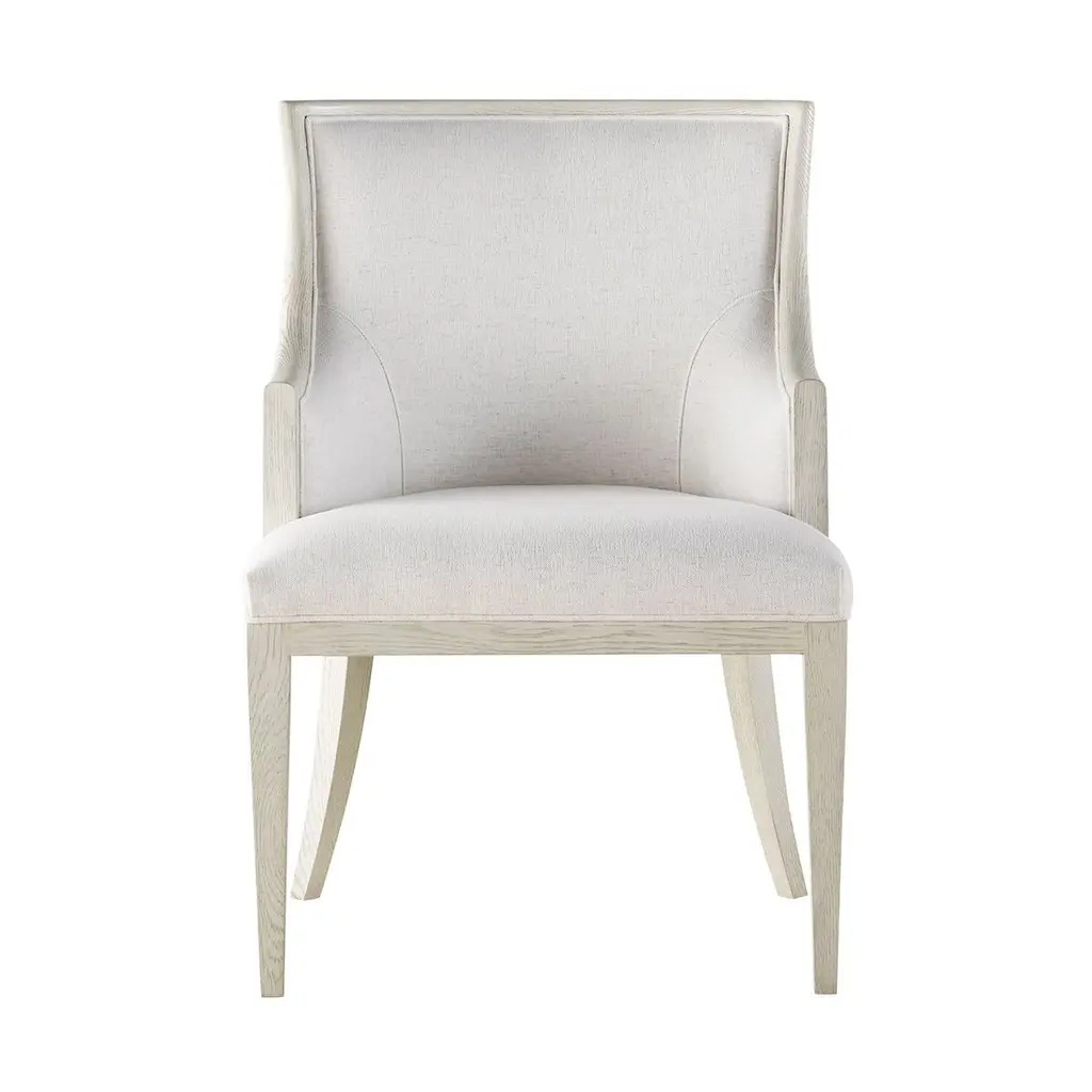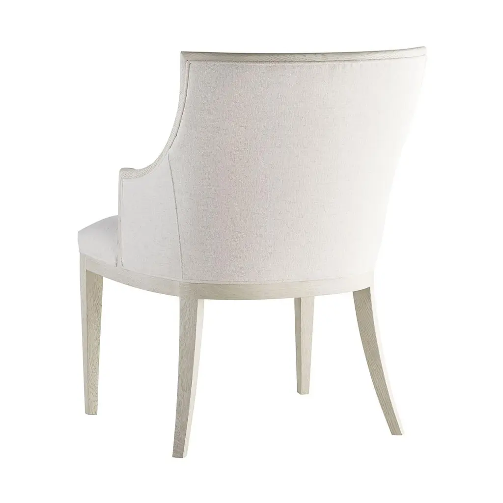A refined piece that blends the clean, sophisticated lines of early 19th-century design with modern comfort. The chair's graceful silhouette, hand-finished in a serene Dover finish, highlights the natural beauty of oak wood, which elegantly frames the generously upholstered back and seat.Perfect for adding a touch of classic charm to any dining space, this transitional chair combines style and comfort, making it an ideal choice for both formal dining and casual gatherings. Elevate your dining experience with this beautifully crafted chair that effortlessly complements a variety of interior stylesDimensions: 24.5" W x 26.25" D x 35.75" HSeat - 19" H